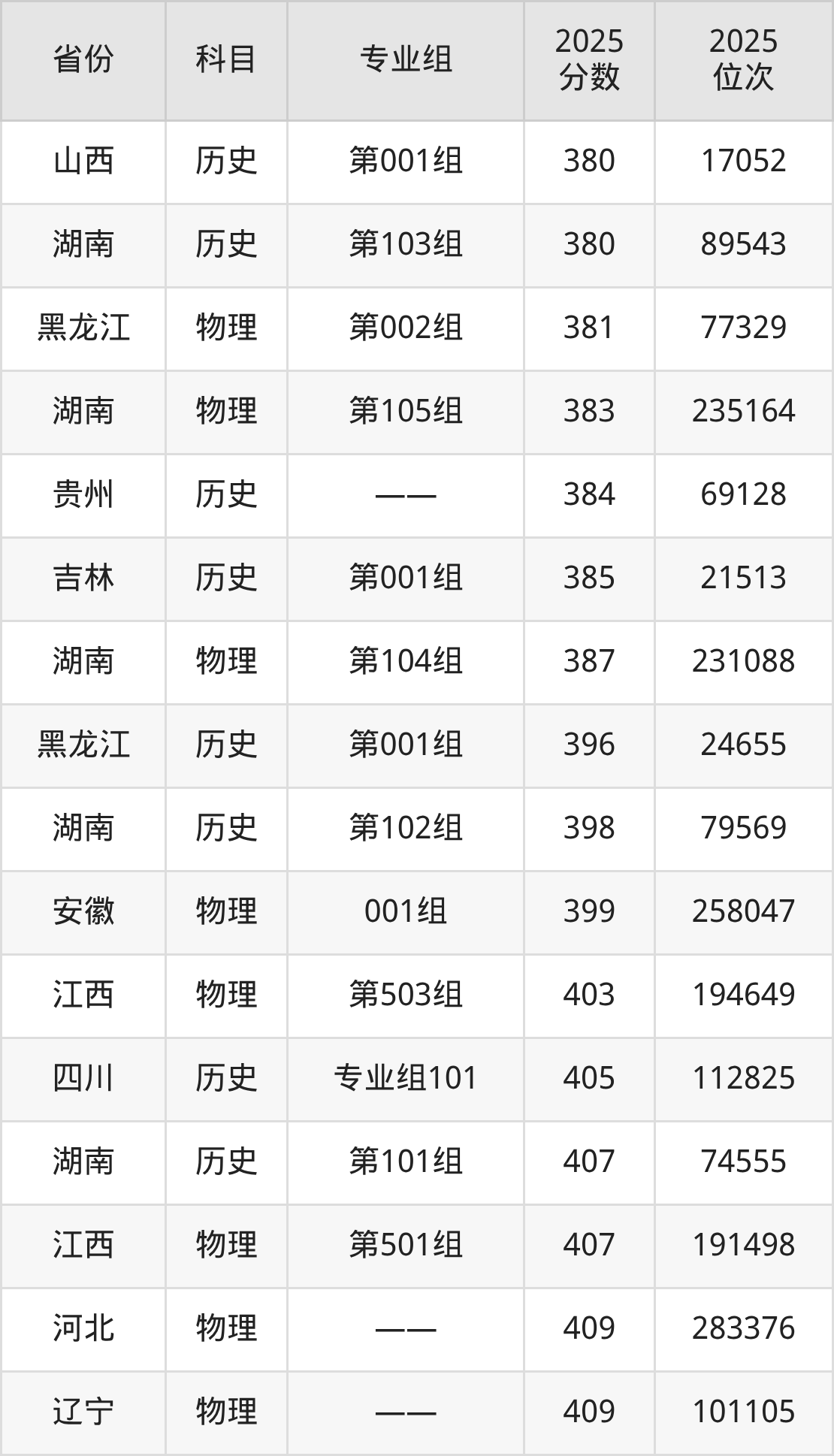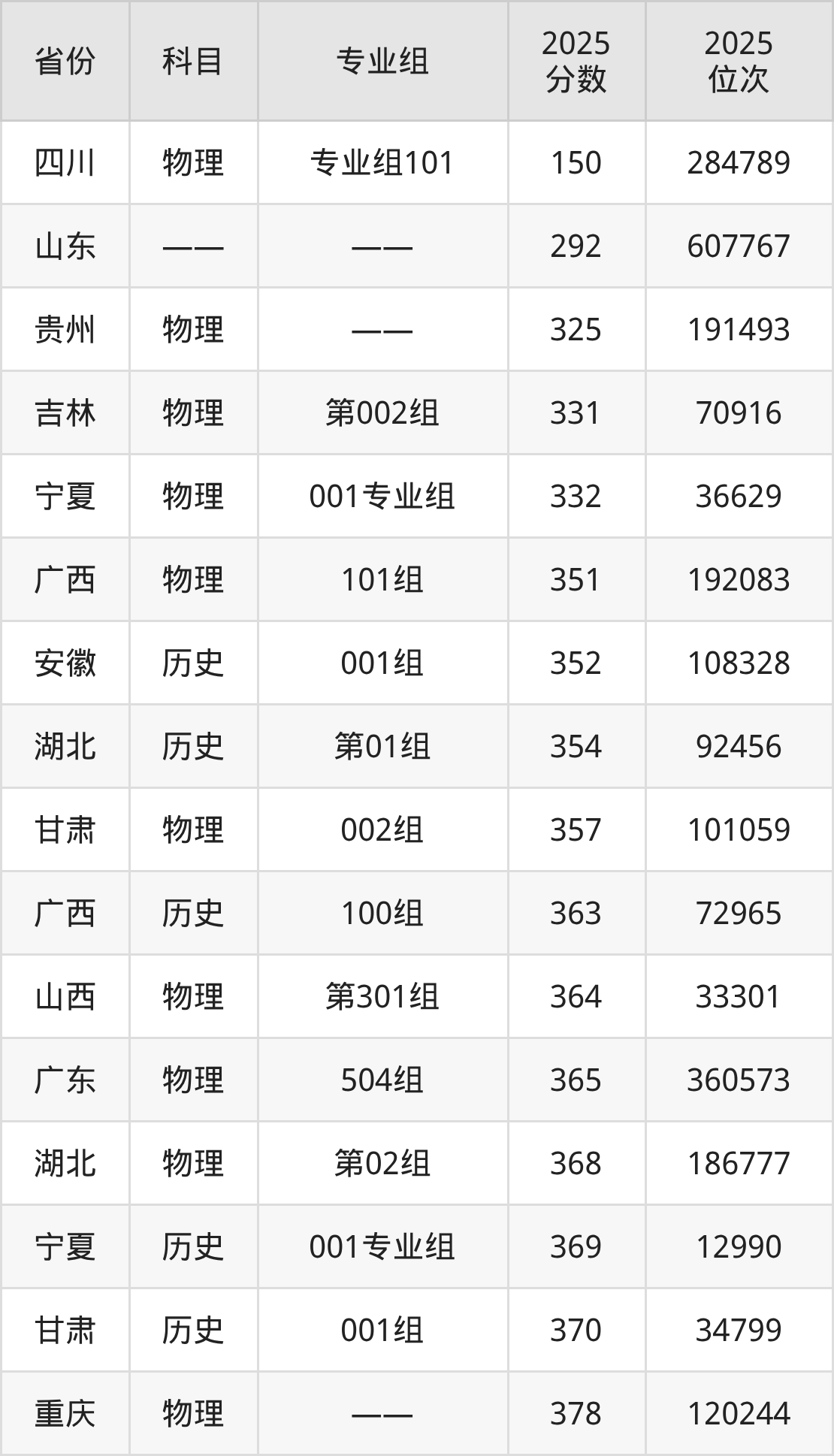 物理类:2025年廊坊卫生职业学院录取最低分是150分(四川),对应的位次排名是284789名。