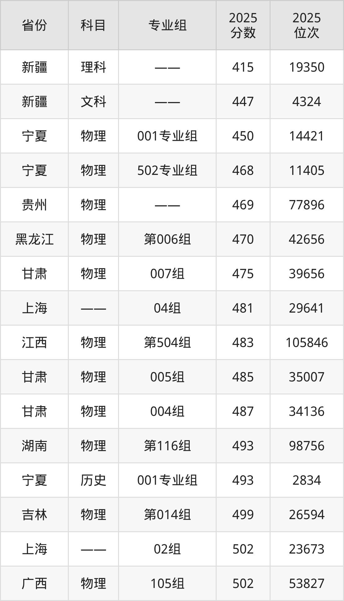 物理类:2025年浙江传媒学院录取最低分是450分(宁夏),对应的位次排名是14421名。