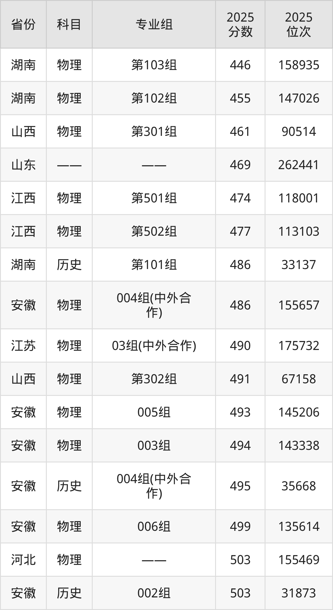 物理类:2025年黄山学院省内录取最低分是486分,对应的位次排名是155657名。建议:如果2026年排名超过155657名,那么被该校录取的概率较大。