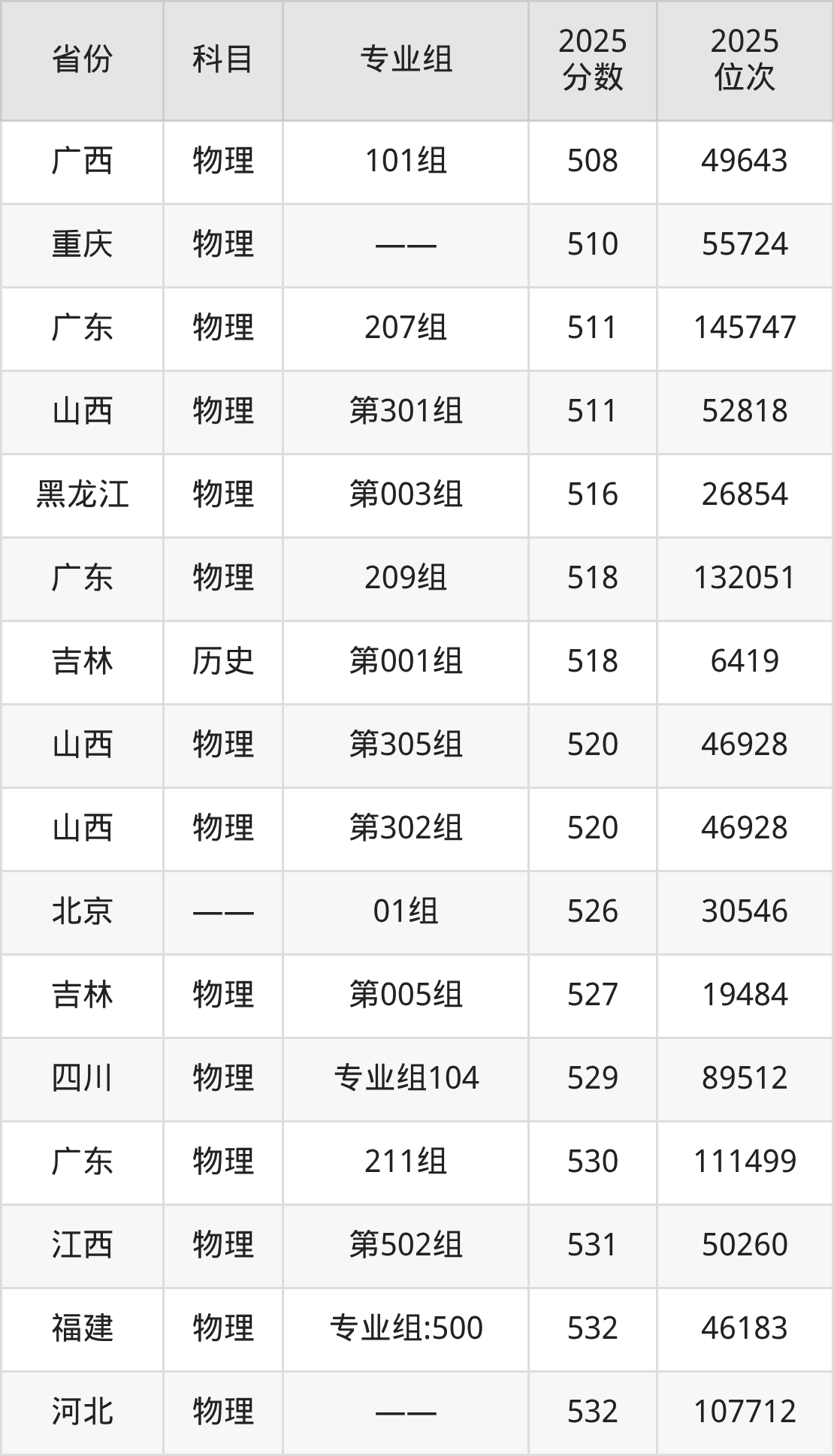 理科:2025年沈阳工业大学录取最低分是457分(新疆),对应的位次排名是13341名。