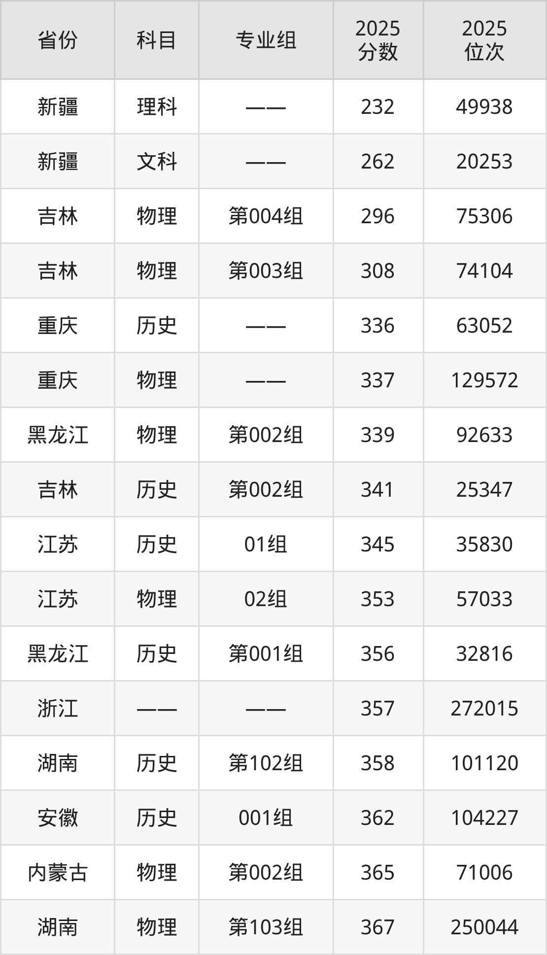 物理类:2025年吉林交通职业技术学院录取最低分是337分(重庆),对应的位次排名是129572名。