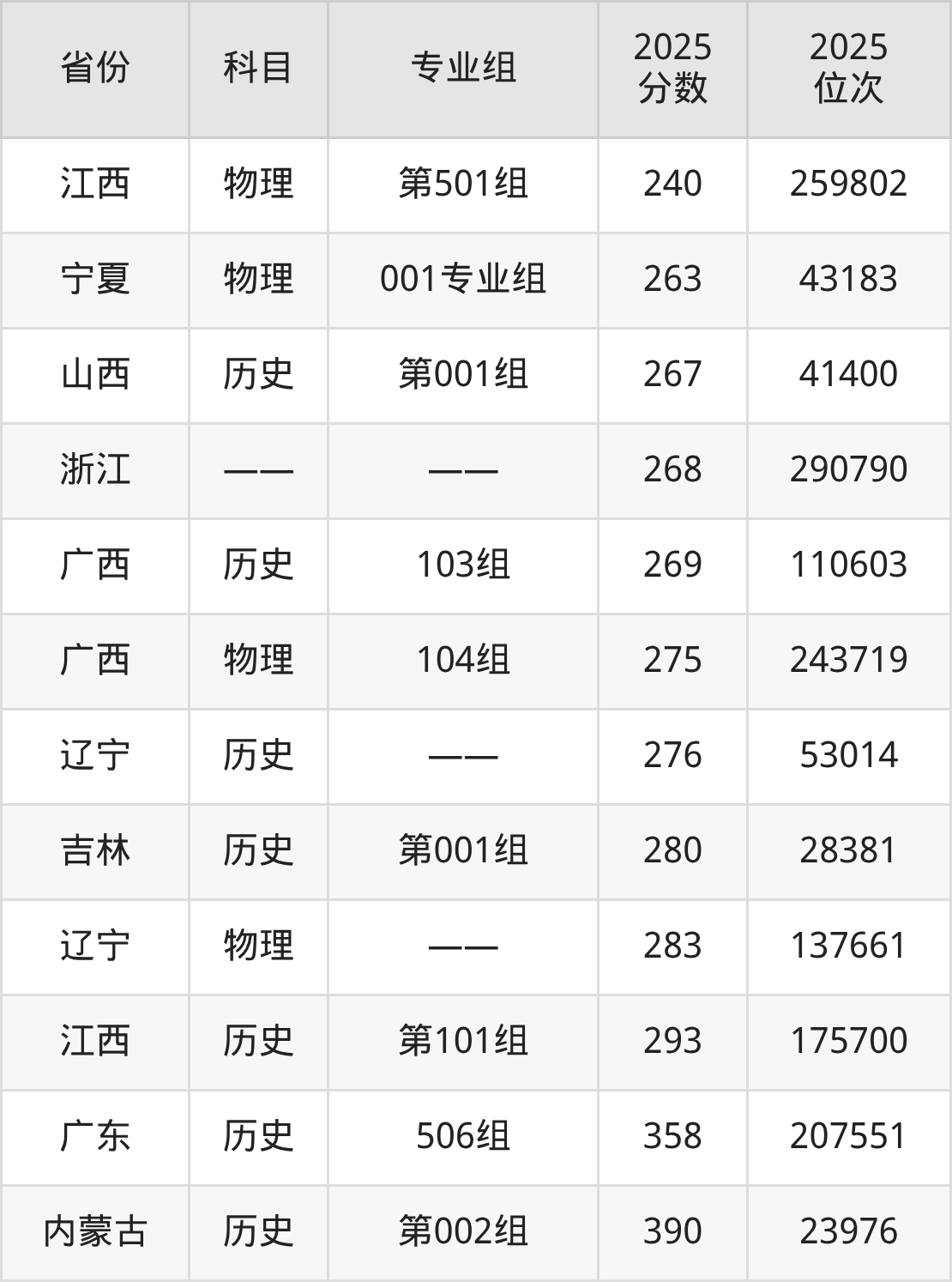 2025年南充电影工业职业学院全国排名第329位,2025年录取分数线最低150分(位次284789)。本文将展示南充电影工业职业学院在各省最低录取分数线汇总,供2026届想要报考该校的考生查阅。