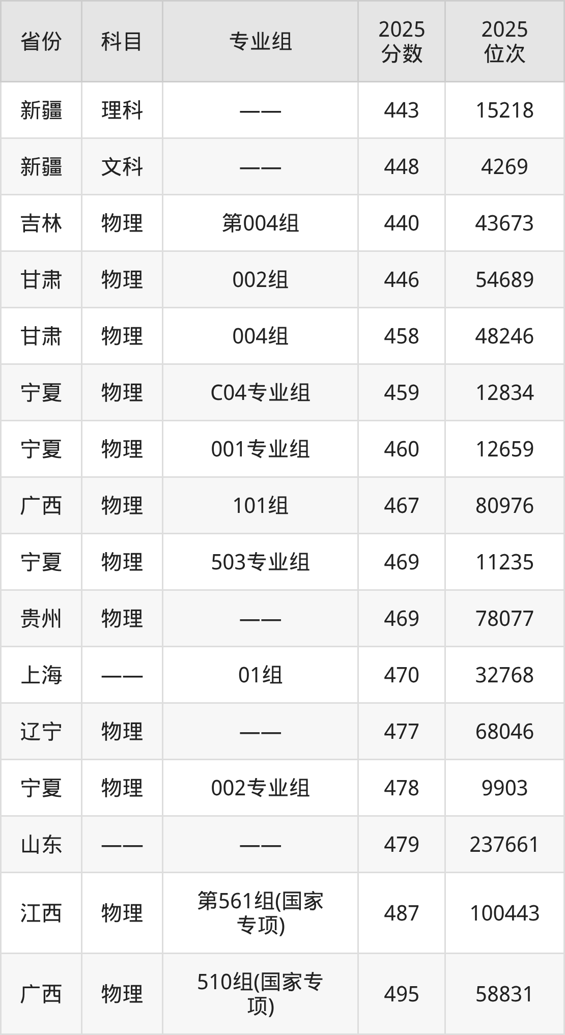 文科:2025年济南大学录取最低分是448分(新疆),对应的位次排名是4269名。