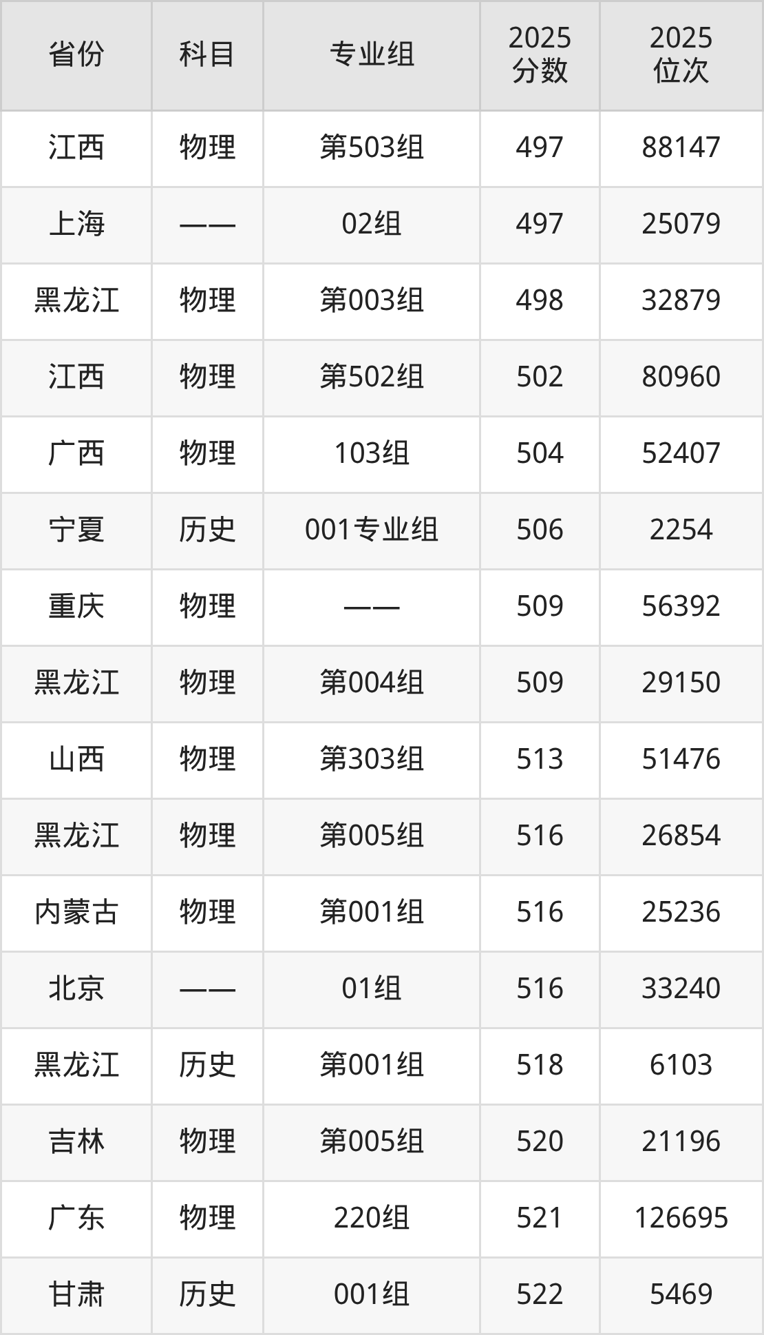 历史类:2025年济南大学录取最低分是506分(宁夏),对应的位次排名是2254名。