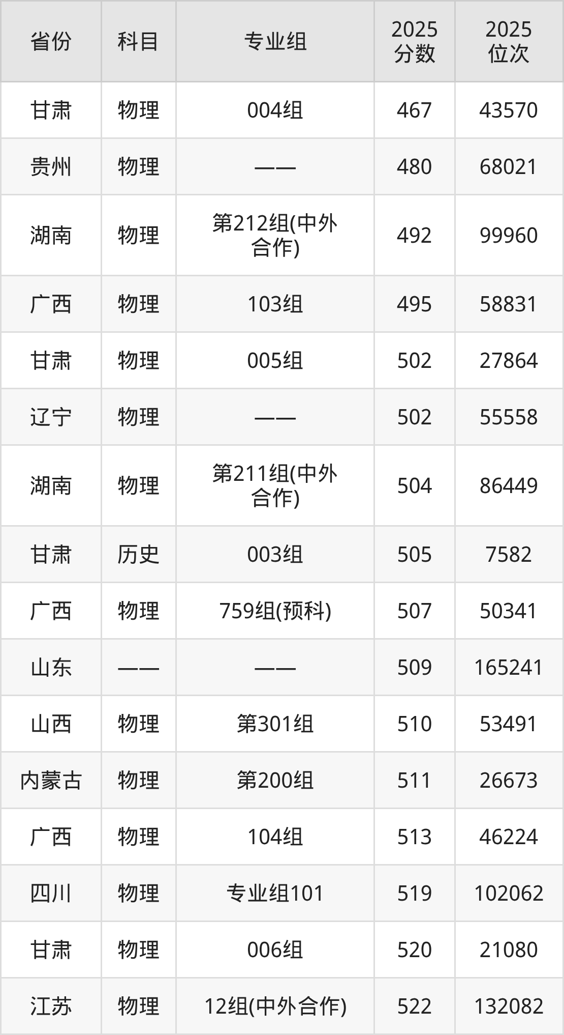 物理类:2025年江苏师范大学录取最低分是467分(甘肃),对应的位次排名是43570名。