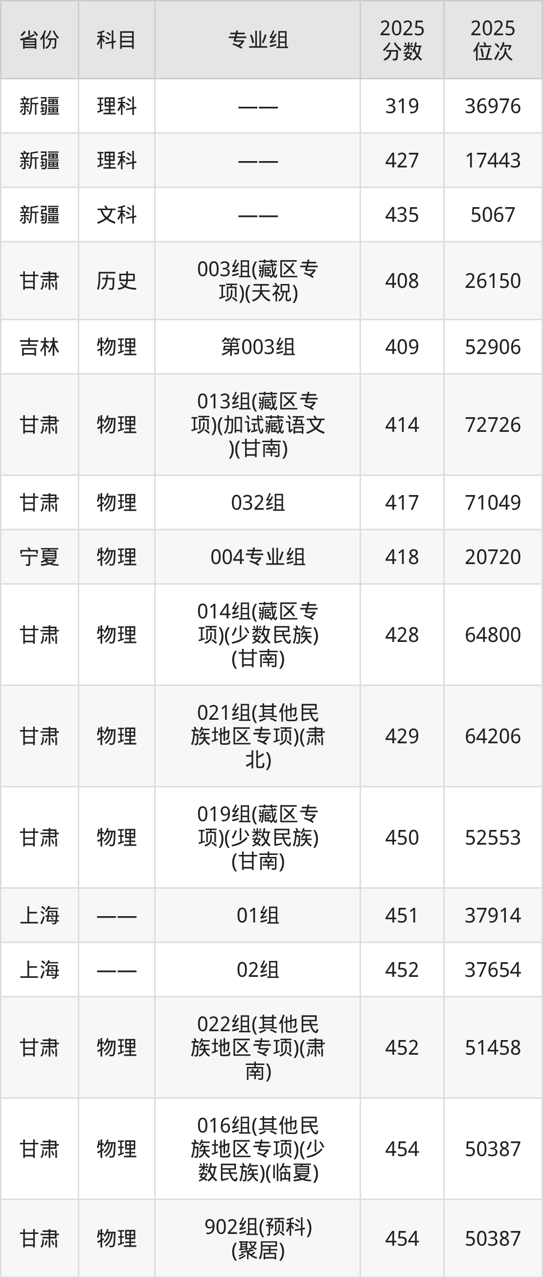 3+3地区:2025年兰州交通大学录取最低分是451分(上海),对应的位次排名是37914名。