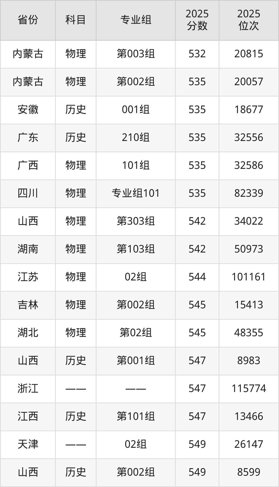 2025年兰州交通大学全国排名第149位,2025年录取分数线最低319分(位次36976)。本文将展示兰州交通大学在各省最低录取分数线汇总,供2026届想要报考该校的考生查阅。