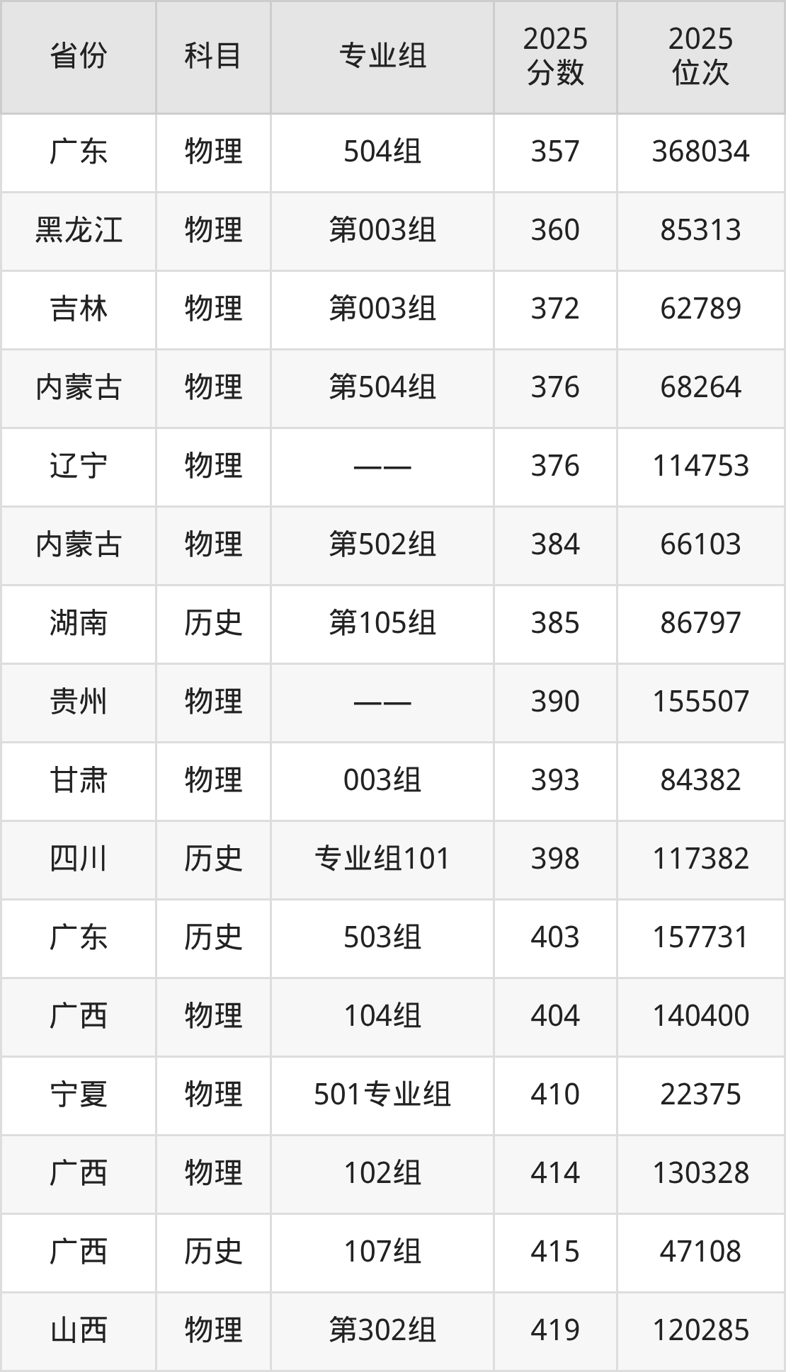 物理类:2025年南昌工学院录取最低分是208分(贵州),对应的位次排名是204841名。