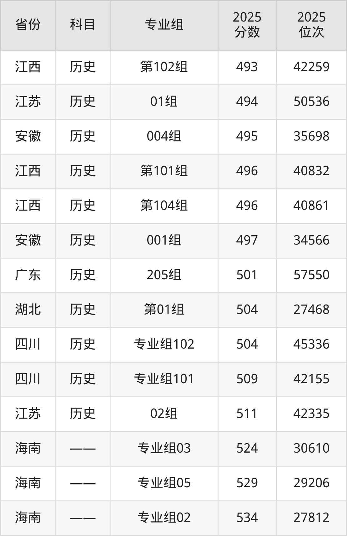 历史类:2025年南昌工学院录取最低分是187分(山西),对应的位次排名是50249名。