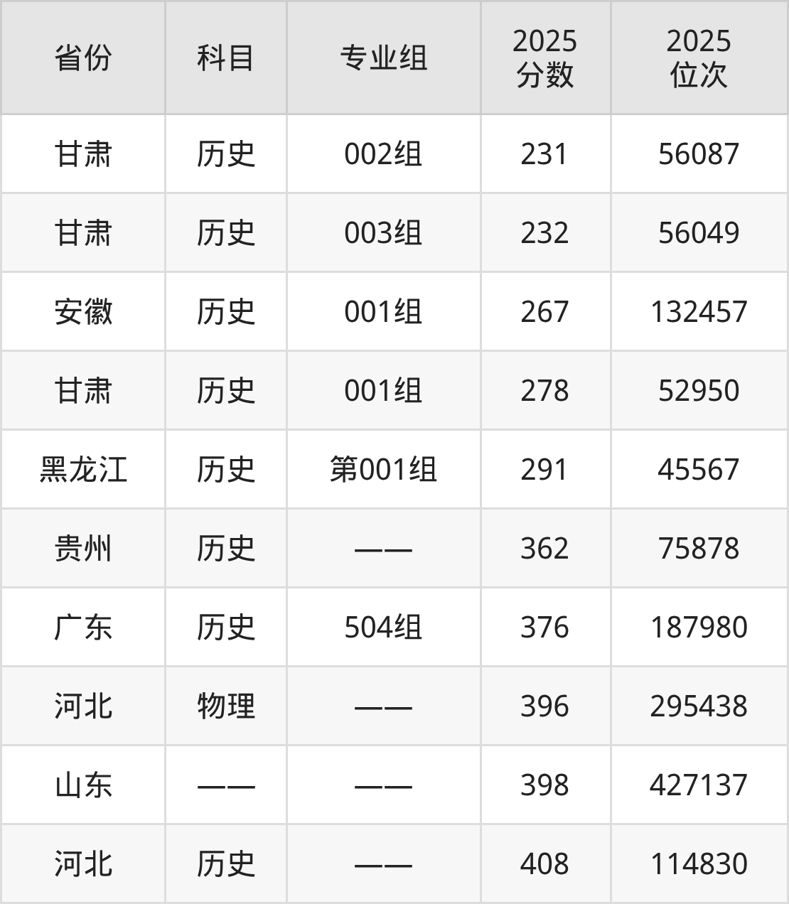 历史类:2025年河北工艺美术职业学院录取最低分是231分(甘肃),对应的位次排名是56087名。