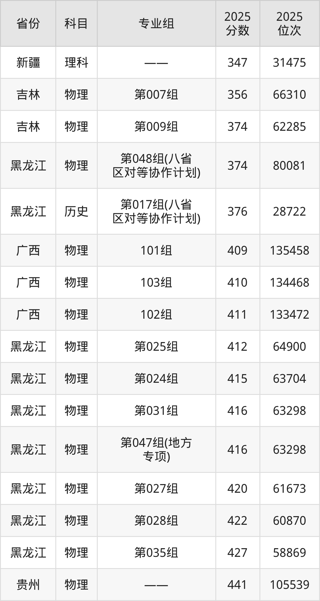 理科:2025年佳木斯大学录取最低分是347分(新疆),对应的位次排名是31475名。