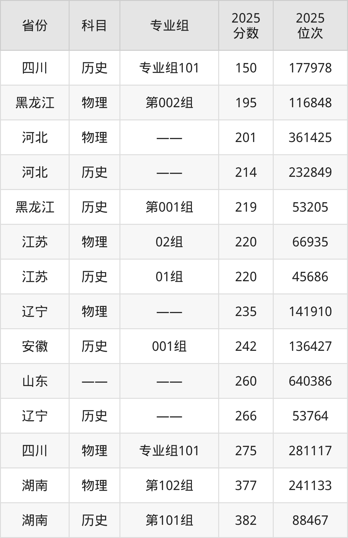 历史类:2025年唐山海运职业学院录取最低分是150分(四川),对应的位次排名是177978名。
