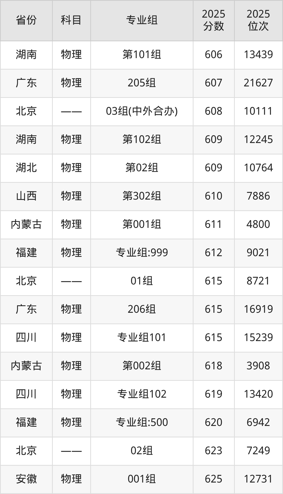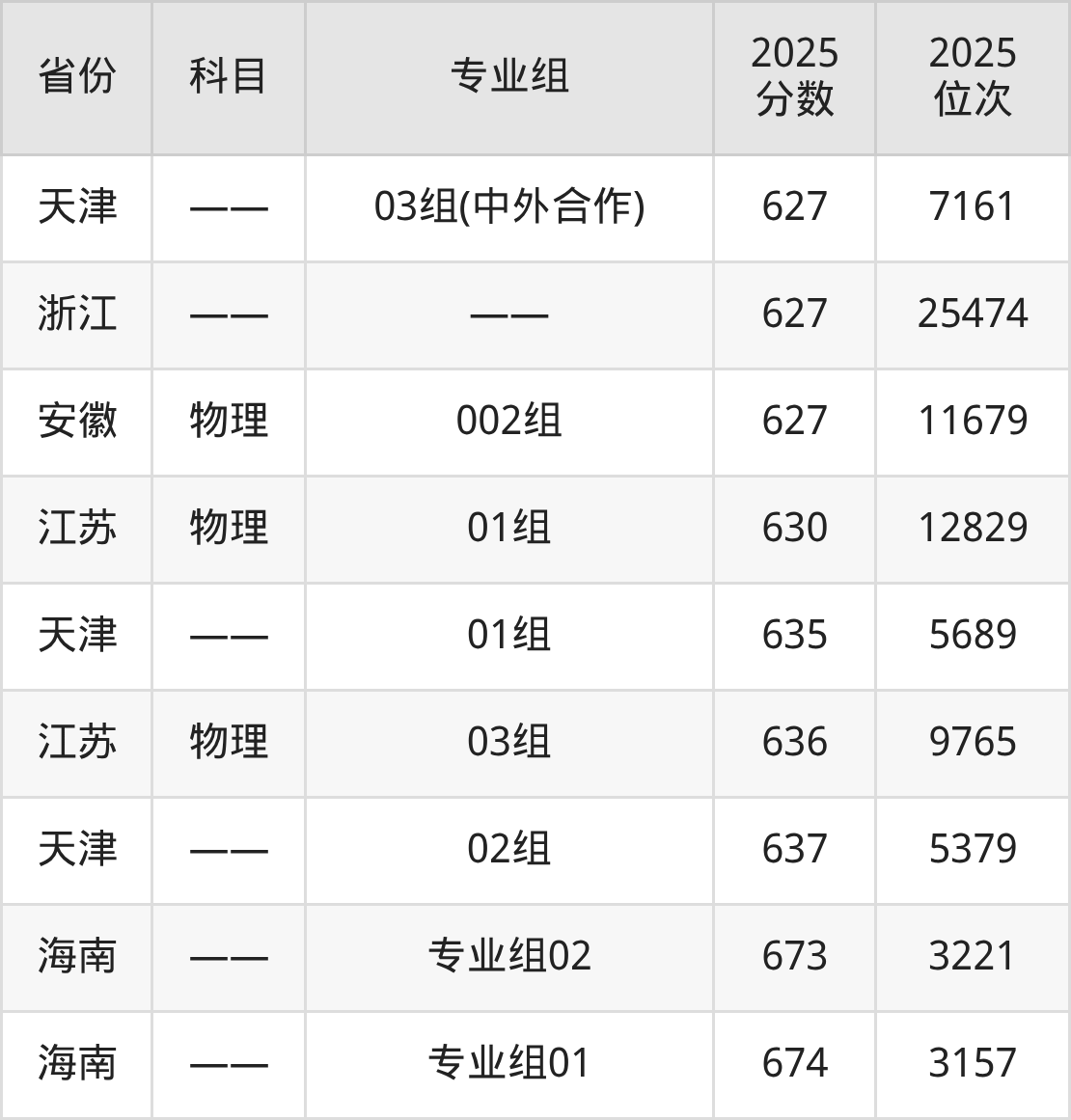 2025年大连理工大学(盘锦校区)全国录取分数线一览表: