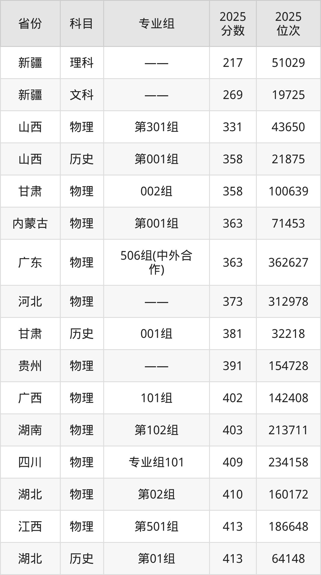 物理类:2025年广州城市职业学院录取最低分是331分(山西),对应的位次排名是43650名。
