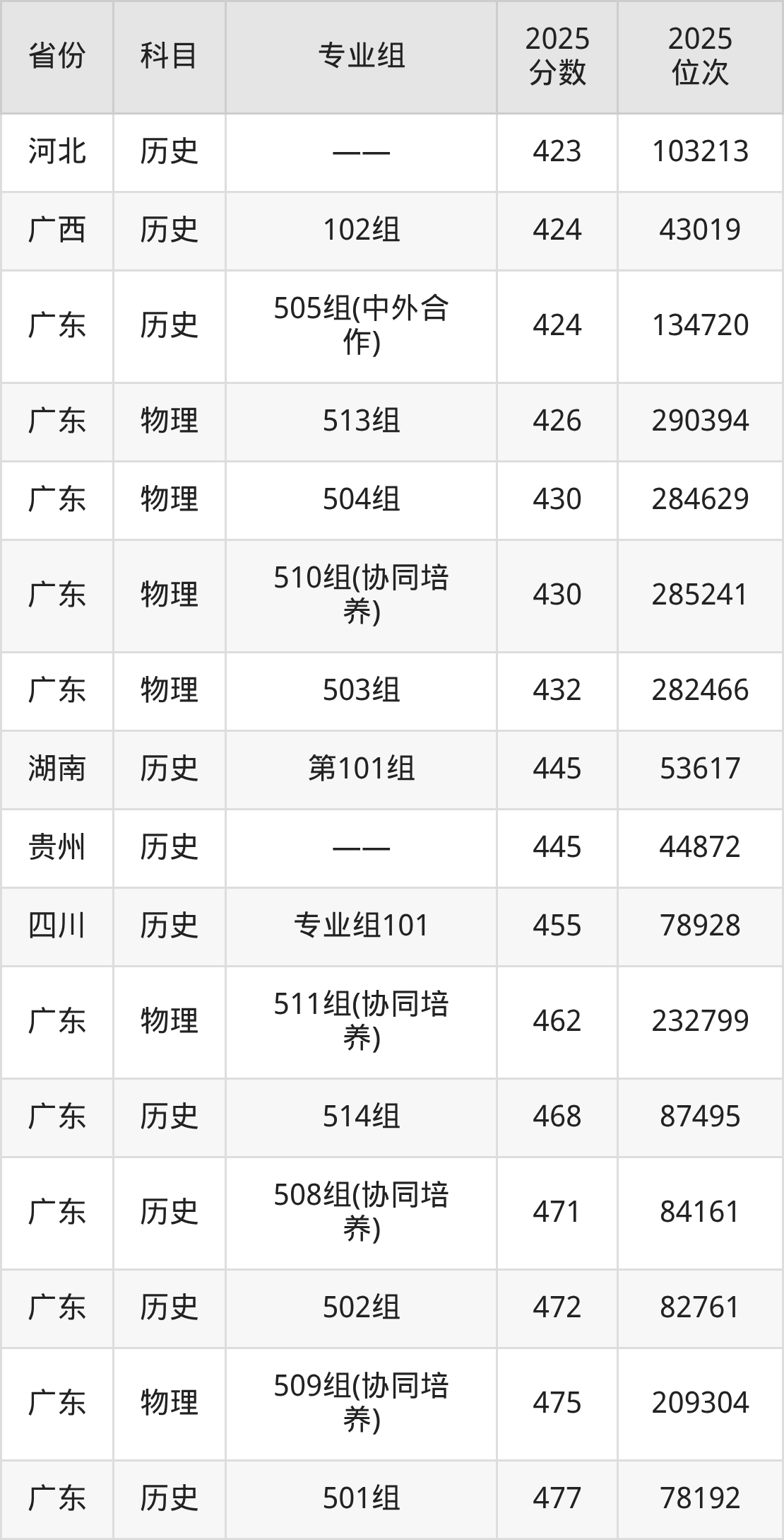 历史类:2025年广州城市职业学院省内录取最低分是424分,对应的位次排名是134720名。建议:如果2026年排名超过134720名,那么被该校录取的概率较大。