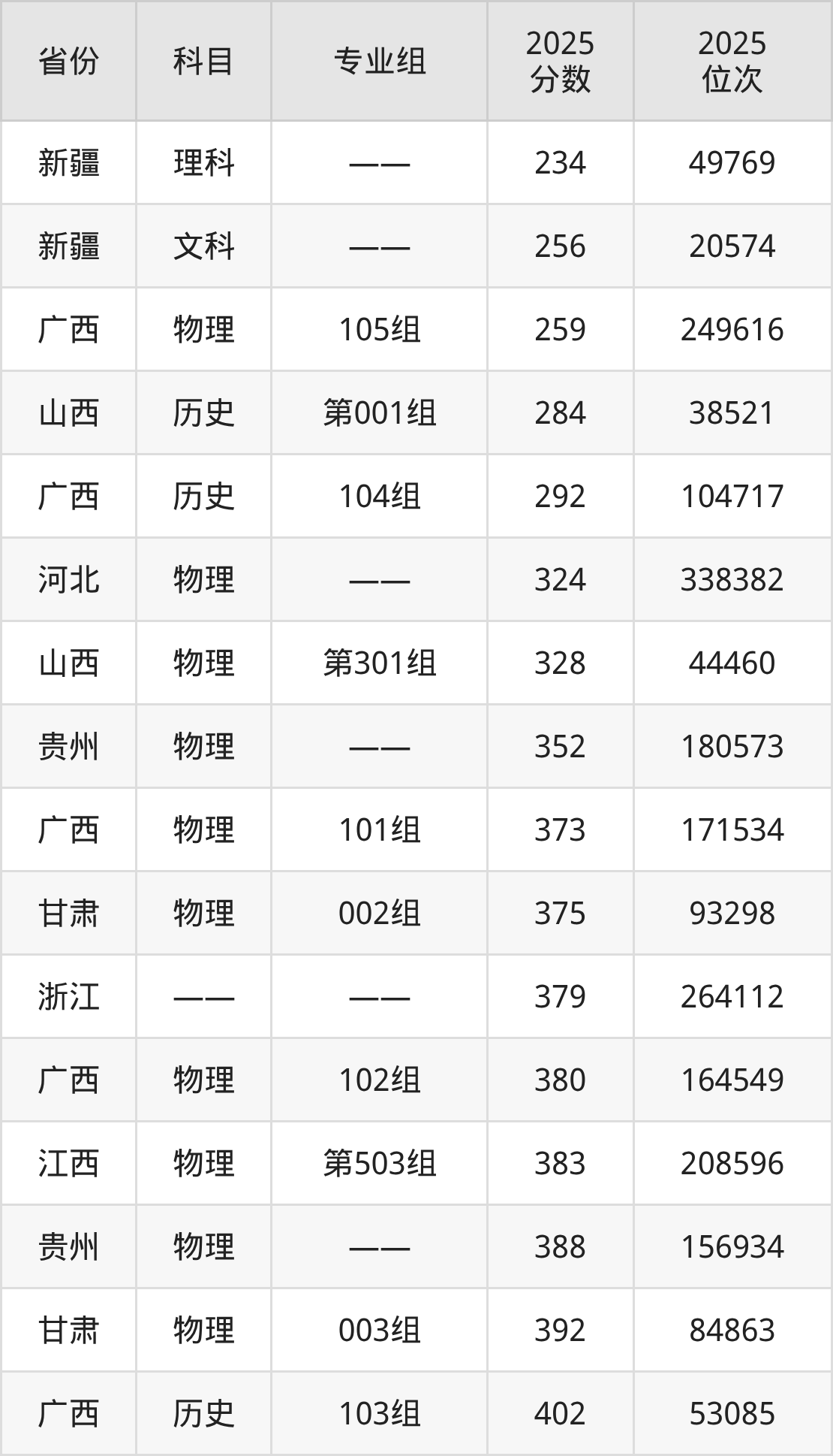 物理类:2025年温州商学院录取最低分是259分(广西),对应的位次排名是249616名。