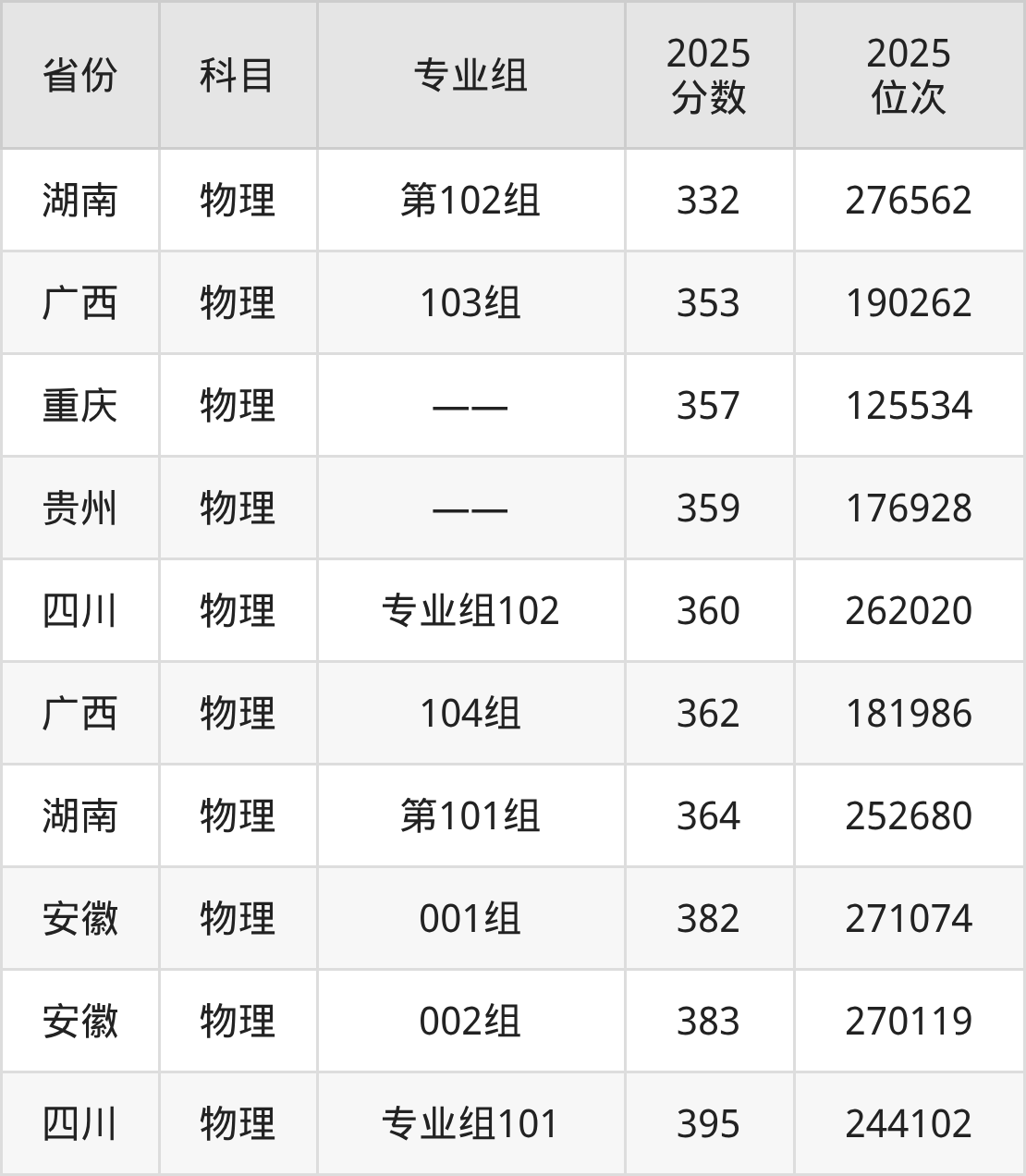物理类:2025年云南交通职业技术学院录取最低分是332分(湖南),对应的位次排名是276562名。
