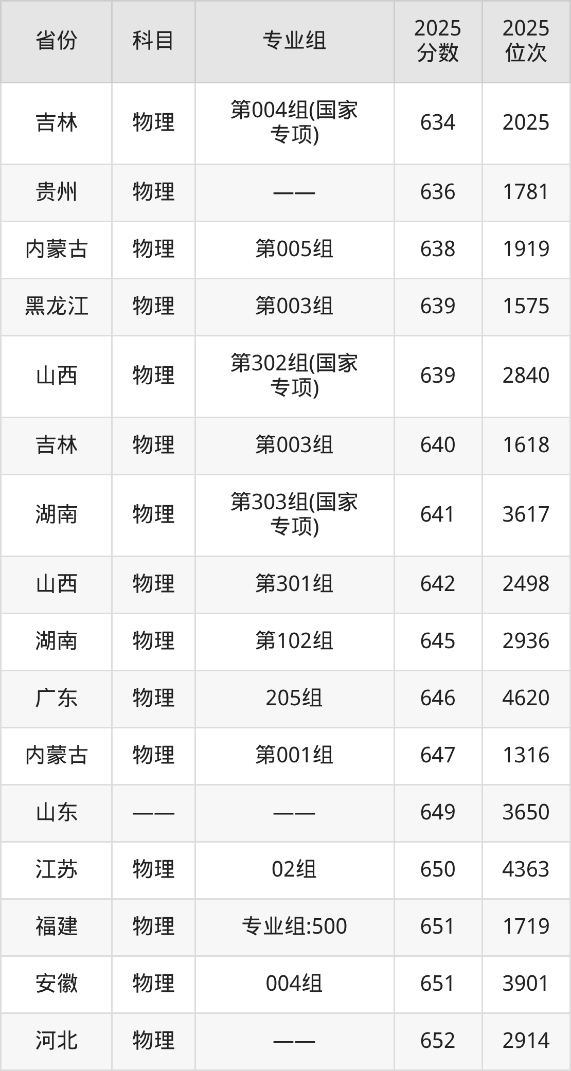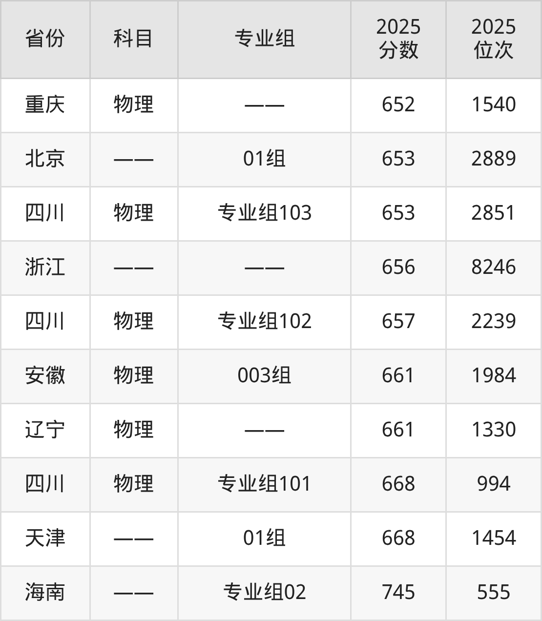 物理类:2025年电子科技大学省内录取最低分是653分,对应的位次排名是2851名。建议:如果2026年排名超过2851名,那么被该校录取的概率较大。