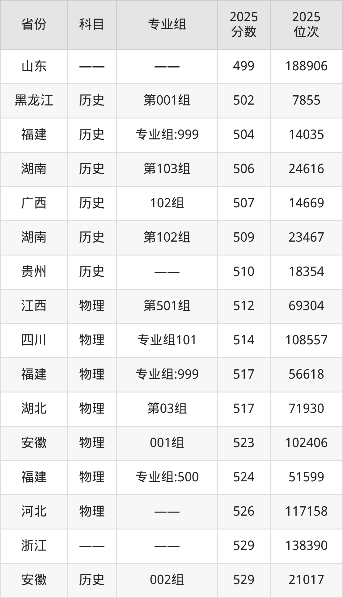 物理类:2025年台州学院录取最低分是449分(贵州),对应的位次排名是97595名。