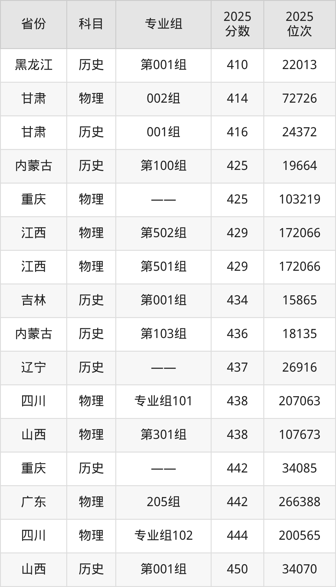 历史类:2025年沈阳城市学院省内录取最低分是437分,对应的位次排名是26916名。建议:如果2026年排名超过26916名,那么被该校录取的概率较大。