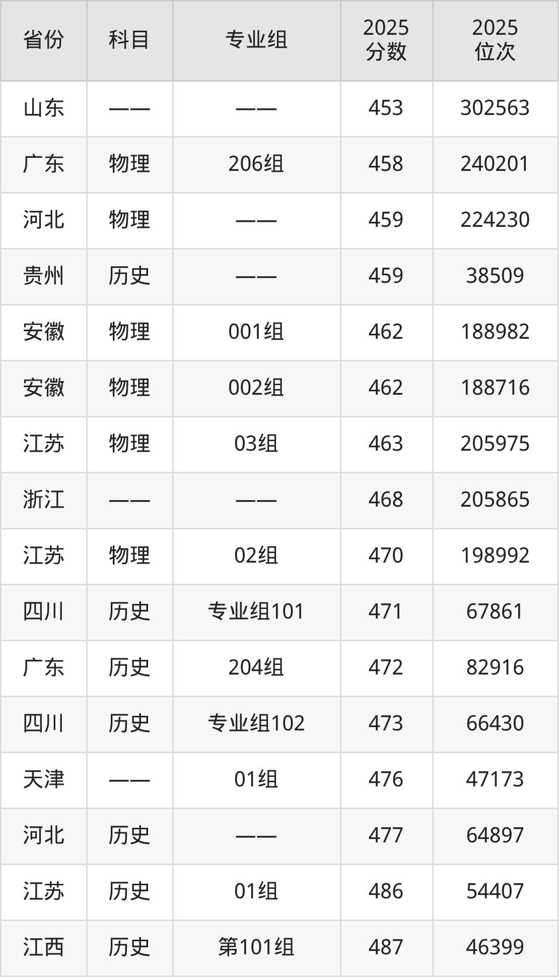3+3地区:2025年沈阳城市学院录取最低分是453分(山东),对应的位次排名是302563名。