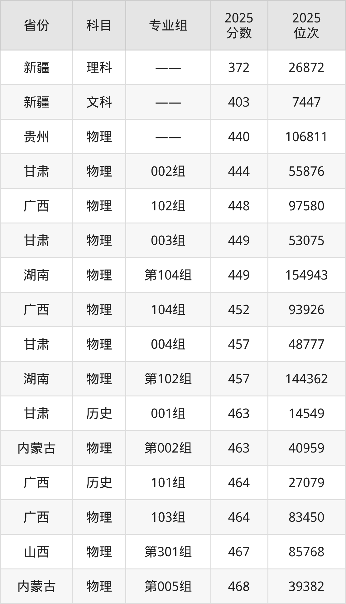 历史类:2025年浙江万里学院录取最低分是463分(甘肃),对应的位次排名是14549名。