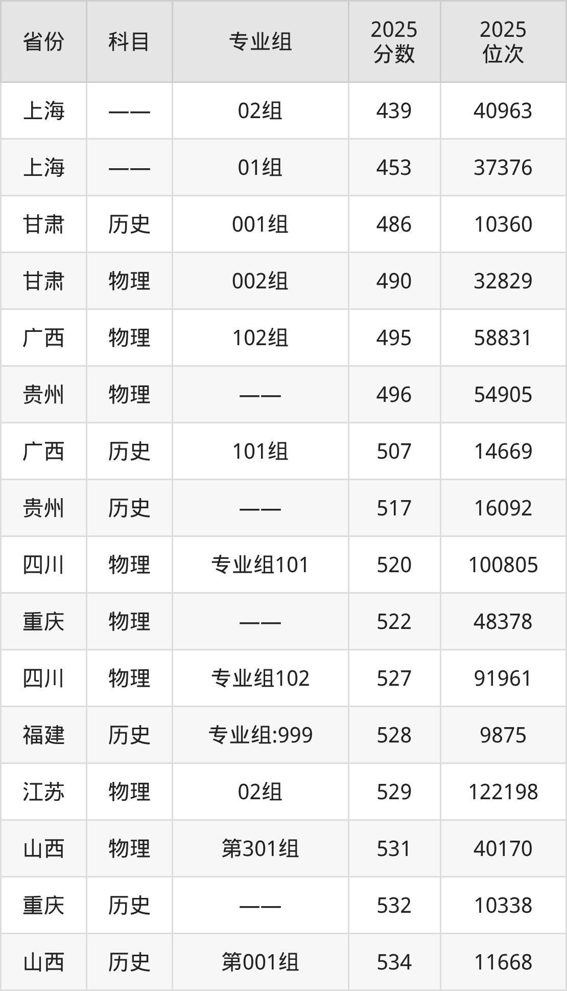 物理类:2025年苏州城市学院录取最低分是490分(甘肃),对应的位次排名是32829名。