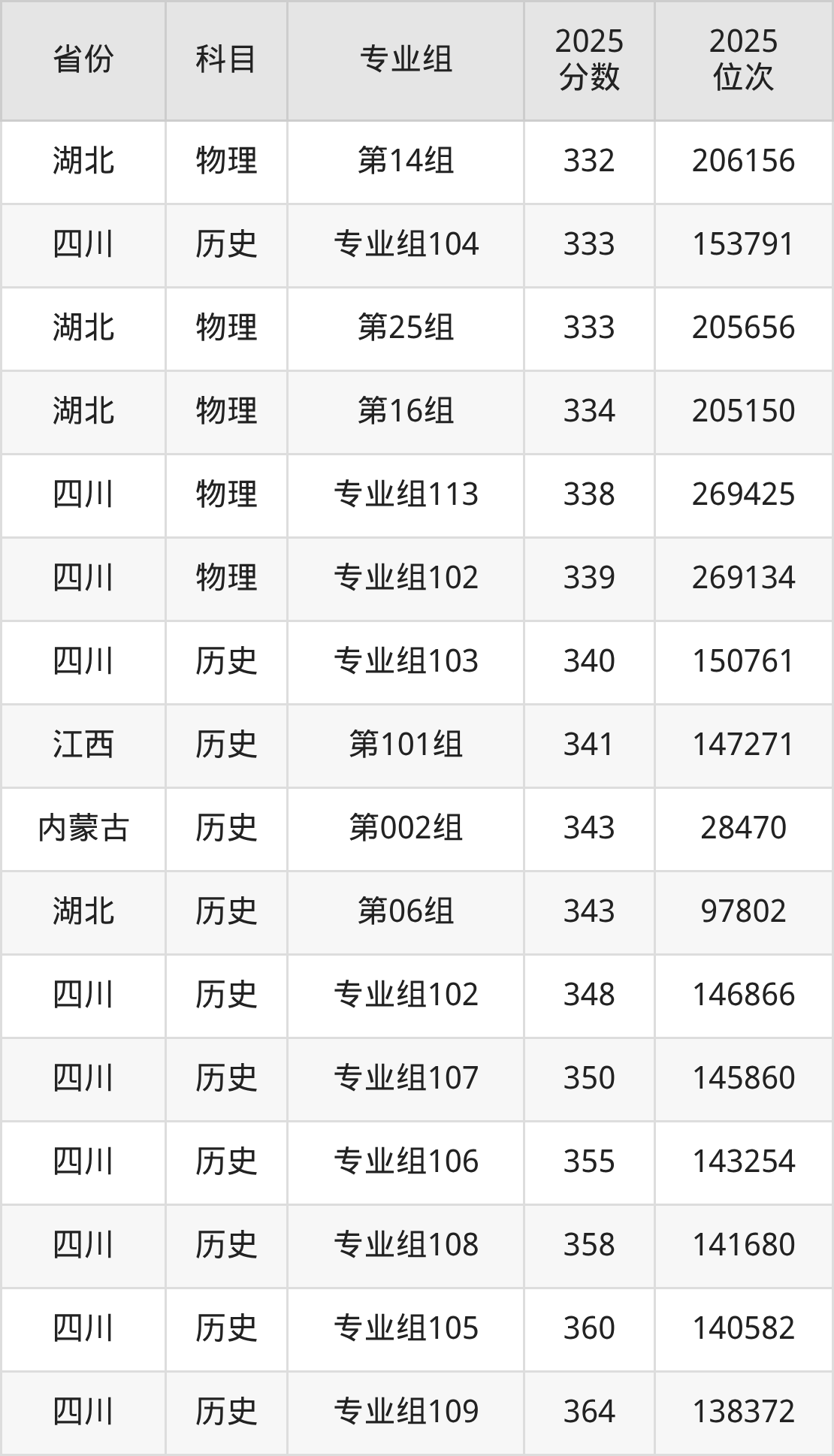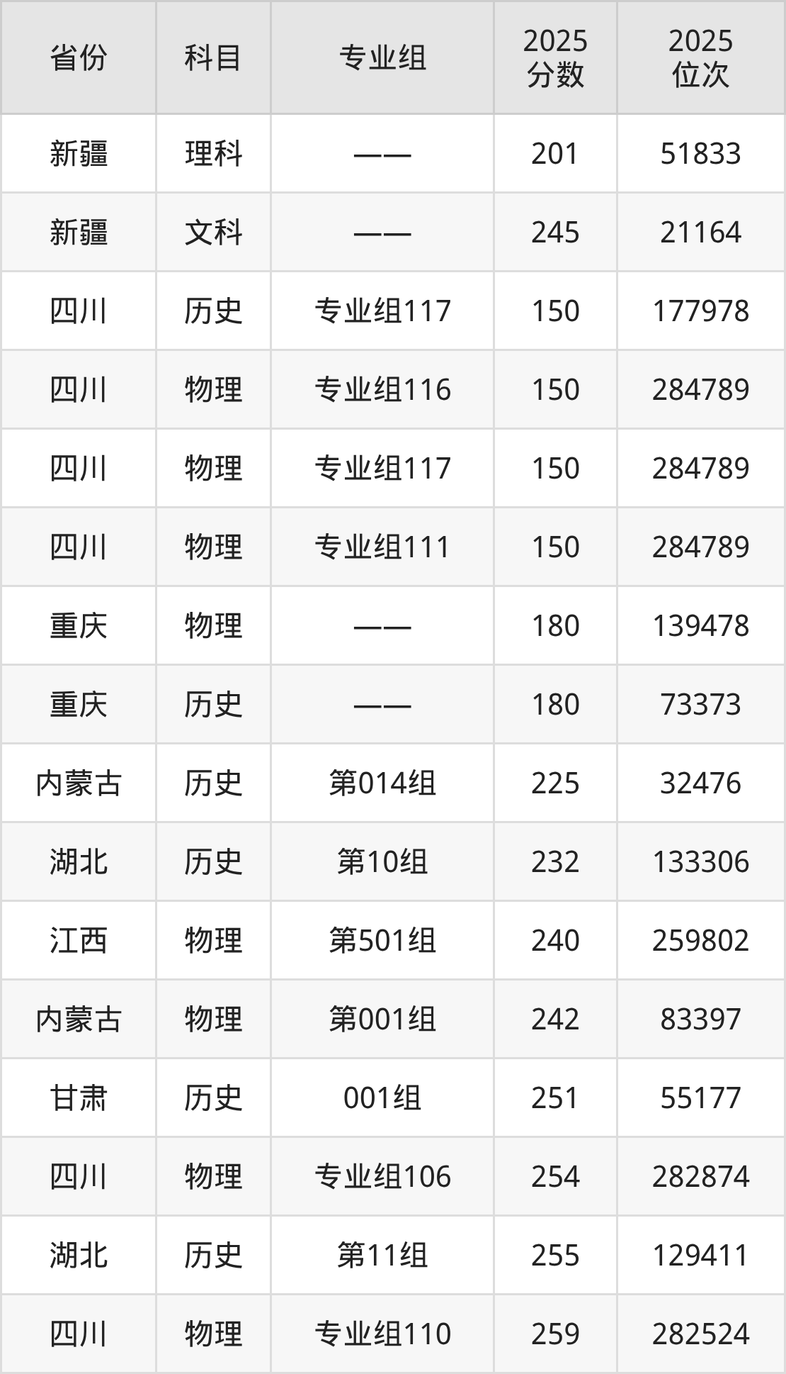 历史类:2025年可克达拉职业技术学院录取最低分是150分(四川),对应的位次排名是177978名。