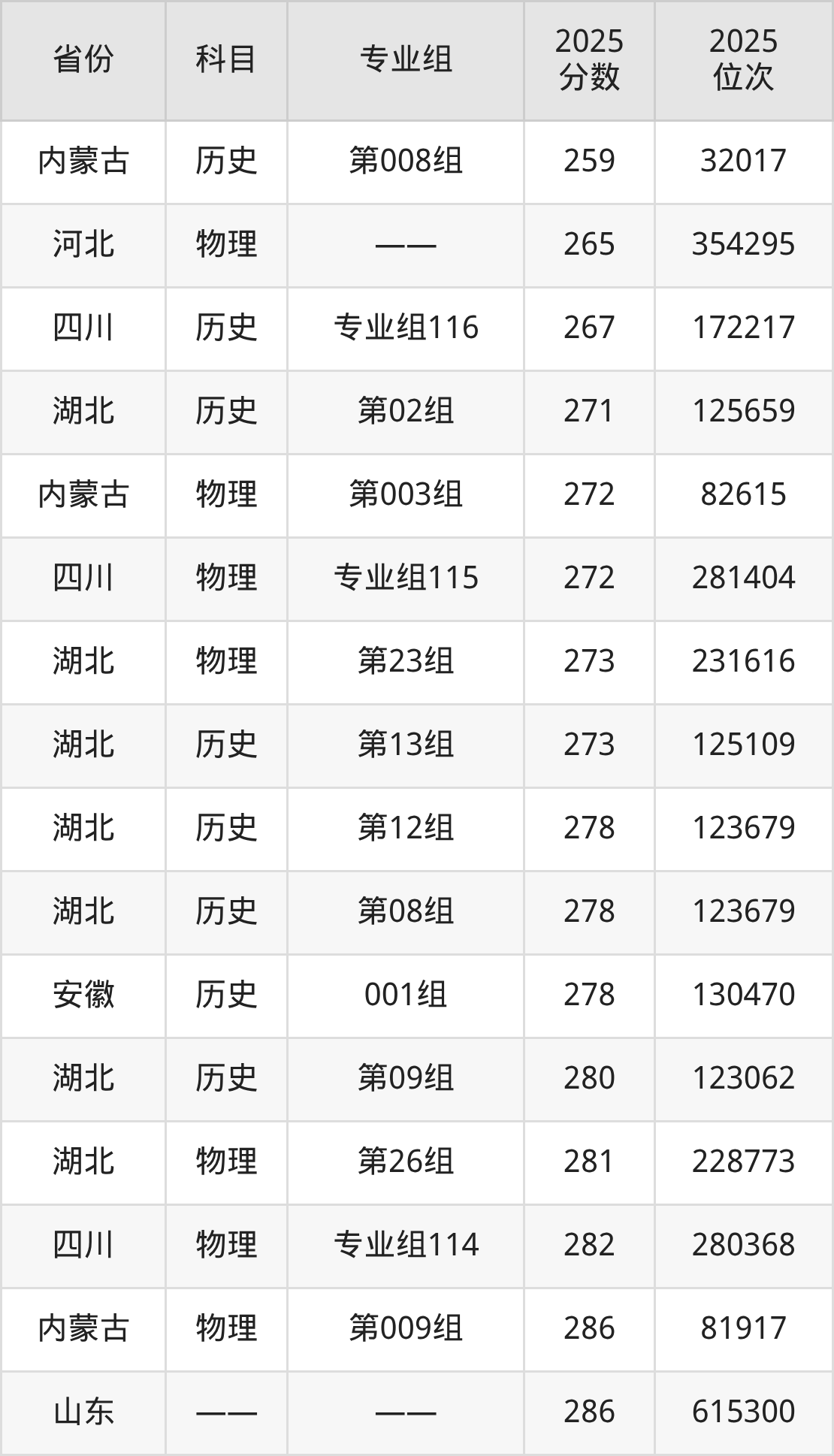 物理类:2025年可克达拉职业技术学院录取最低分是150分(四川),对应的位次排名是284789名。