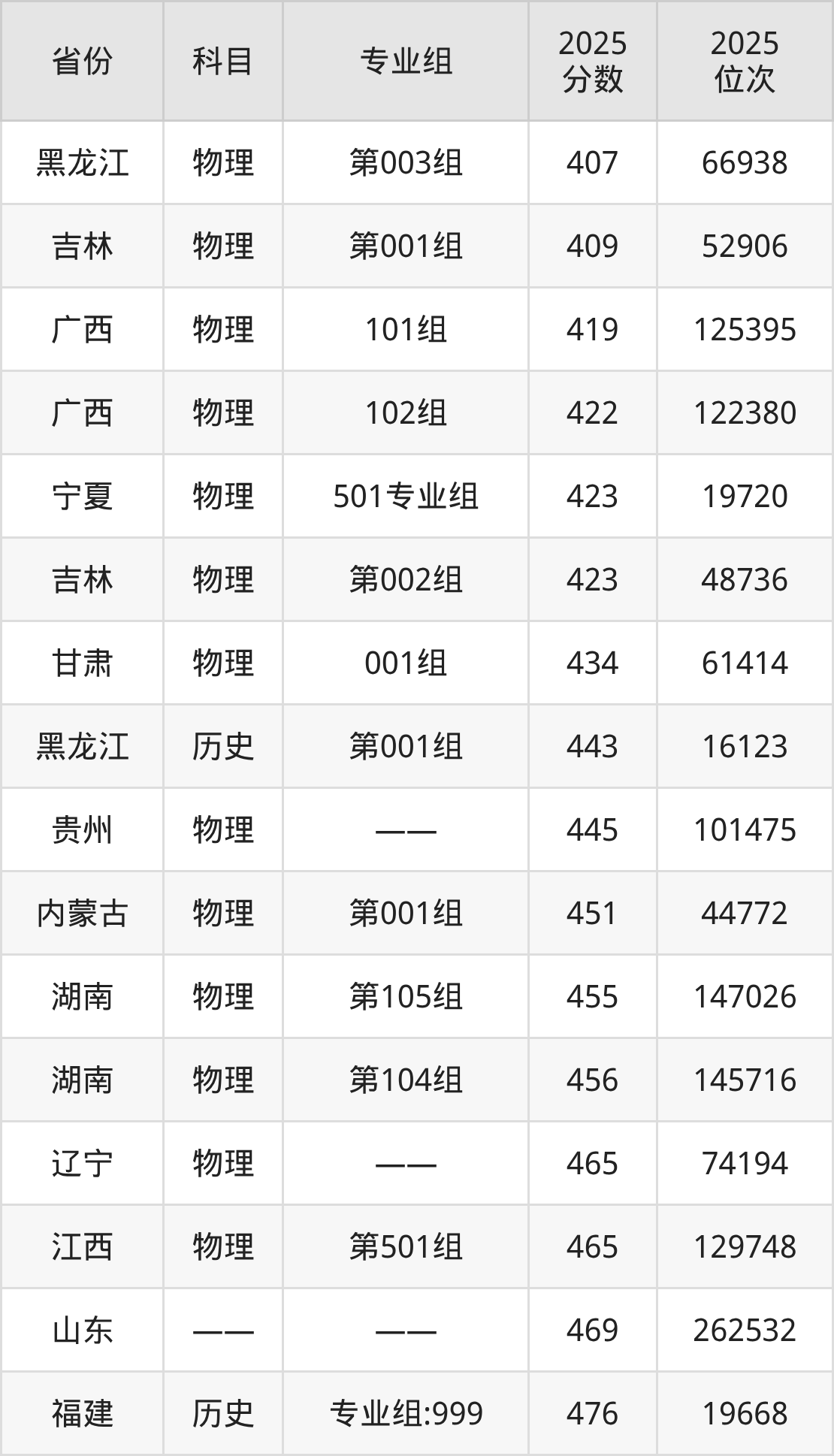 物理类:2025年河北科技师范学院录取最低分是407分(黑龙江),对应的位次排名是66938名。