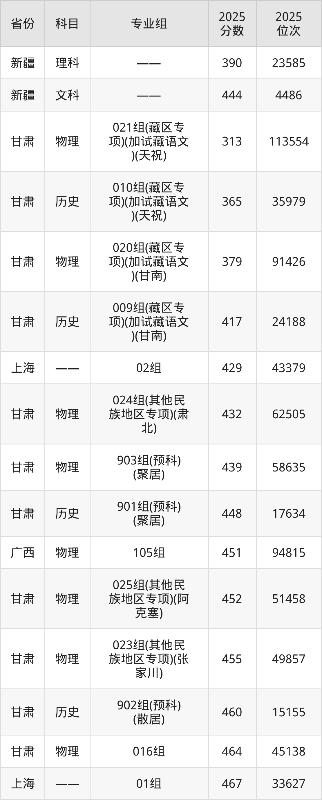 理科:2025年甘肃政法大学录取最低分是390分(新疆),对应的位次排名是23585名。