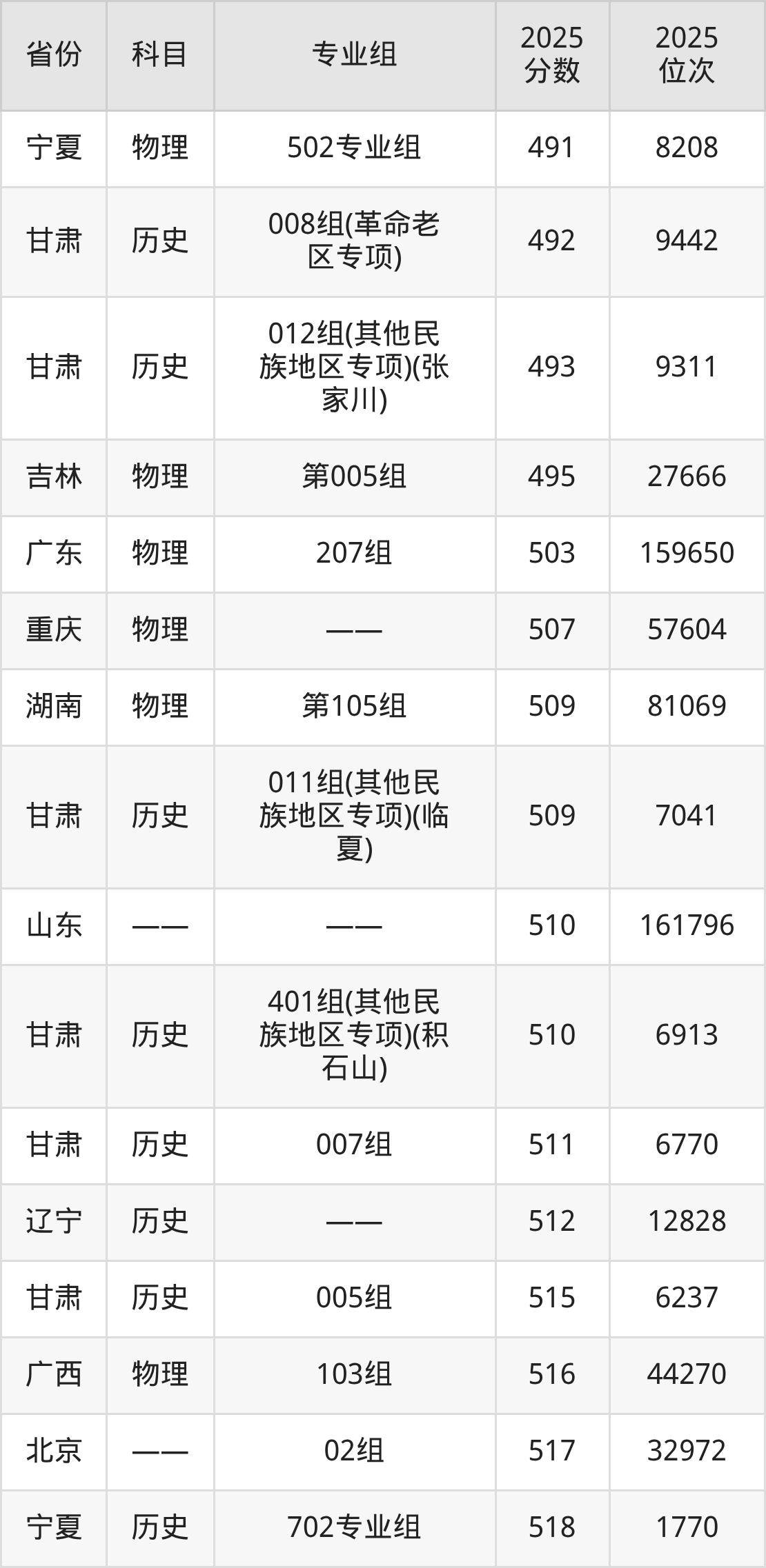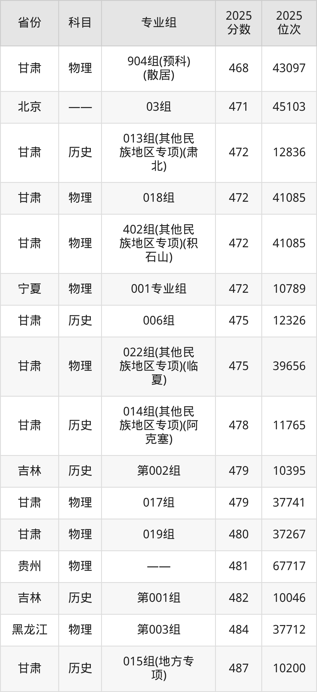 历史类:2025年甘肃政法大学录取最低分是479分(吉林),对应的位次排名是10395名。