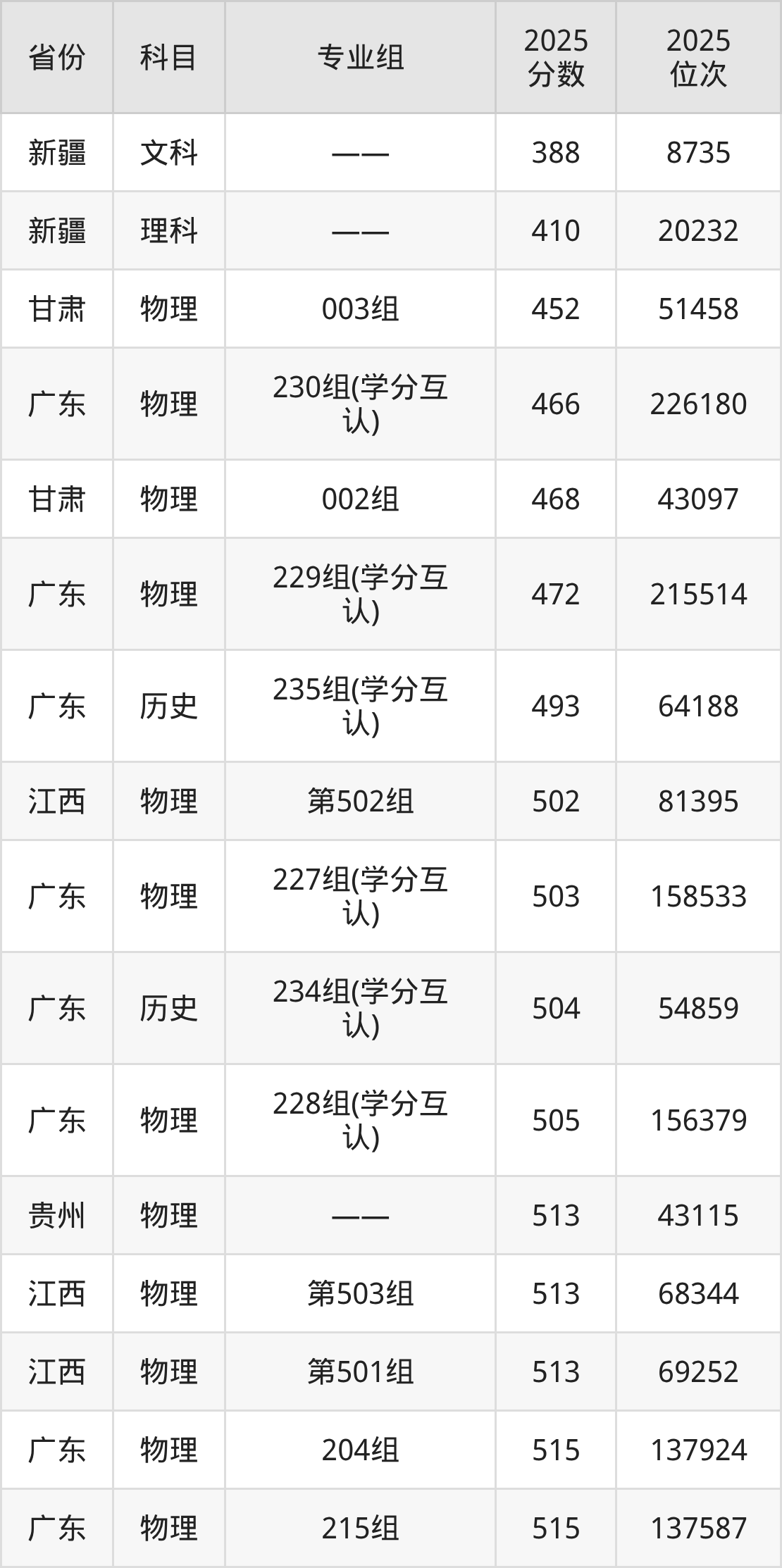文科:2025年广东第二师范学院录取最低分是388分(新疆),对应的位次排名是8735名。