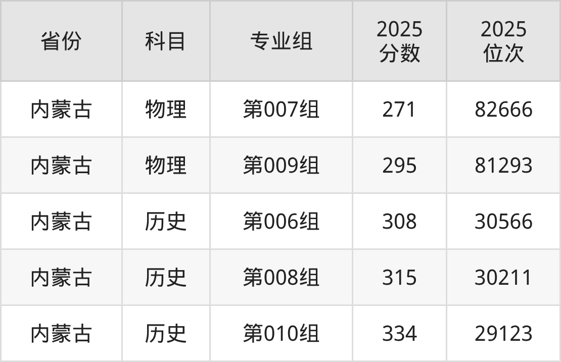 物理类:2025年内蒙古体育职业学院自治区内录取最低分是271分,对应的位次排名是82666名。建议:如果2026年排名超过82666名,那么被该校录取的概率较大。