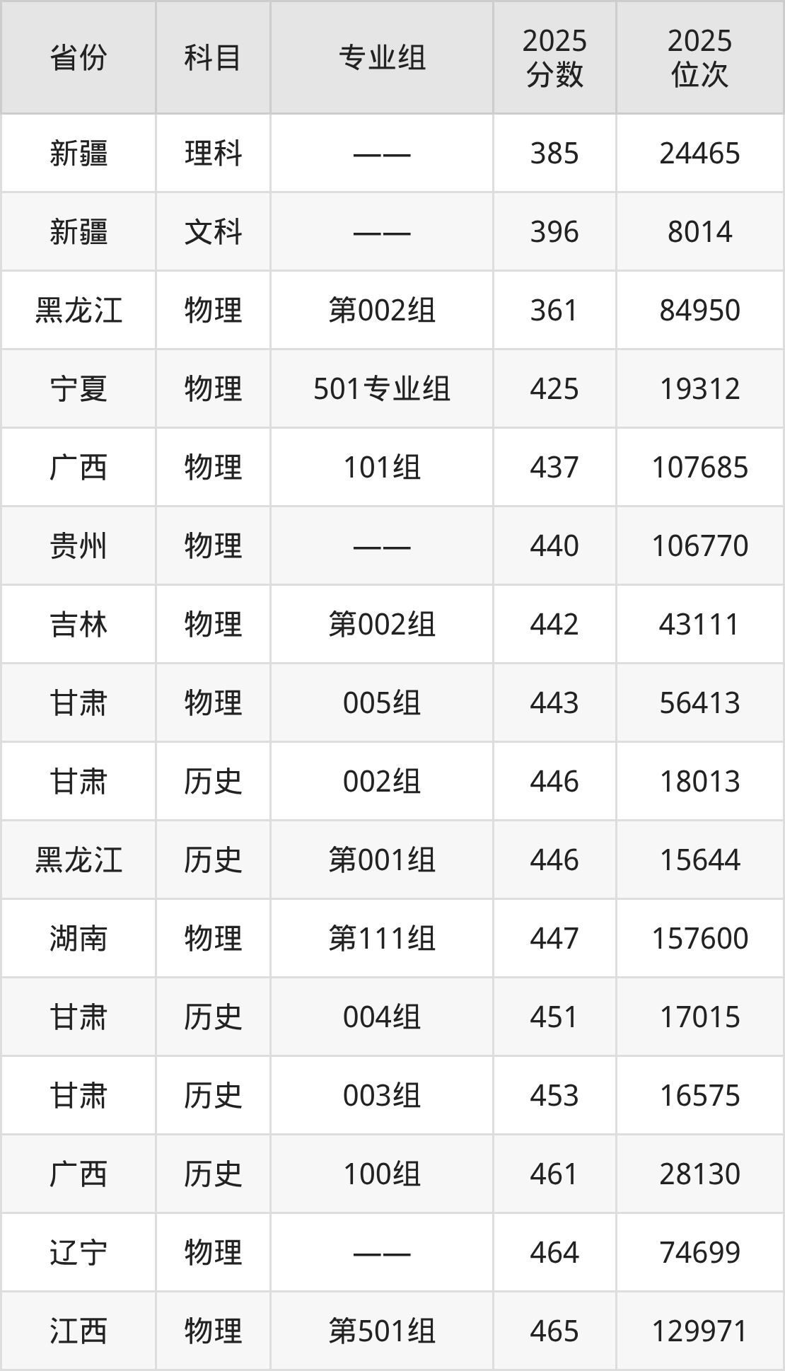 理科:2025年洛阳师范学院录取最低分是385分(新疆),对应的位次排名是24465名。
