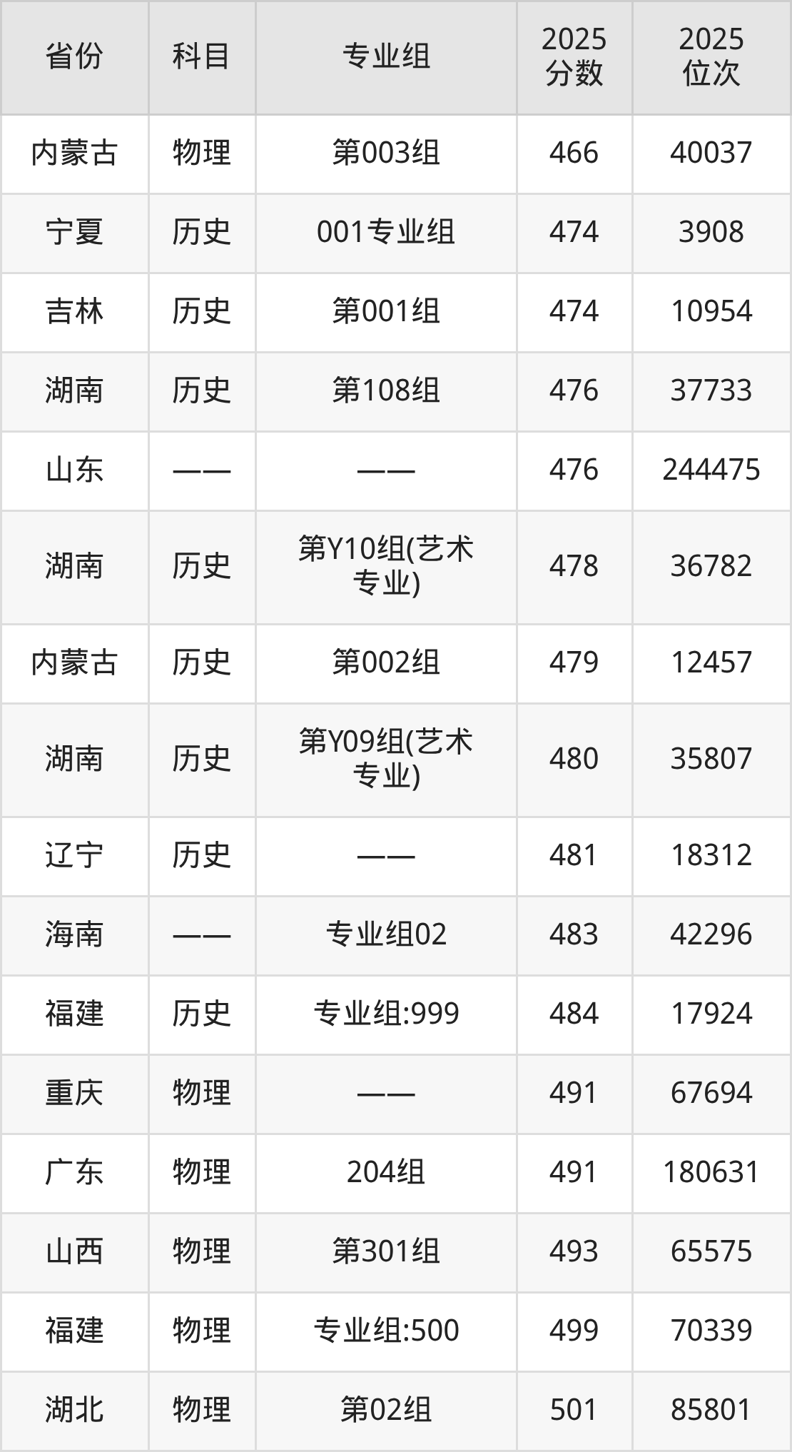 3+3地区:2025年洛阳师范学院录取最低分是476分(山东),对应的位次排名是244475名。