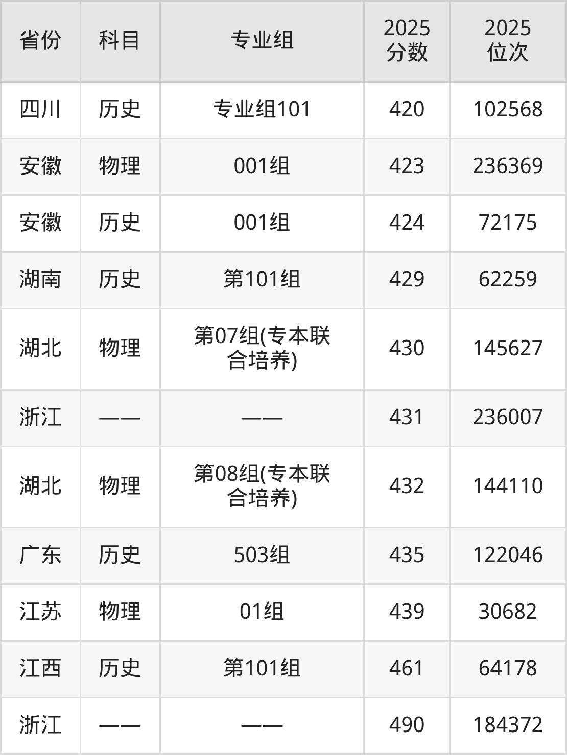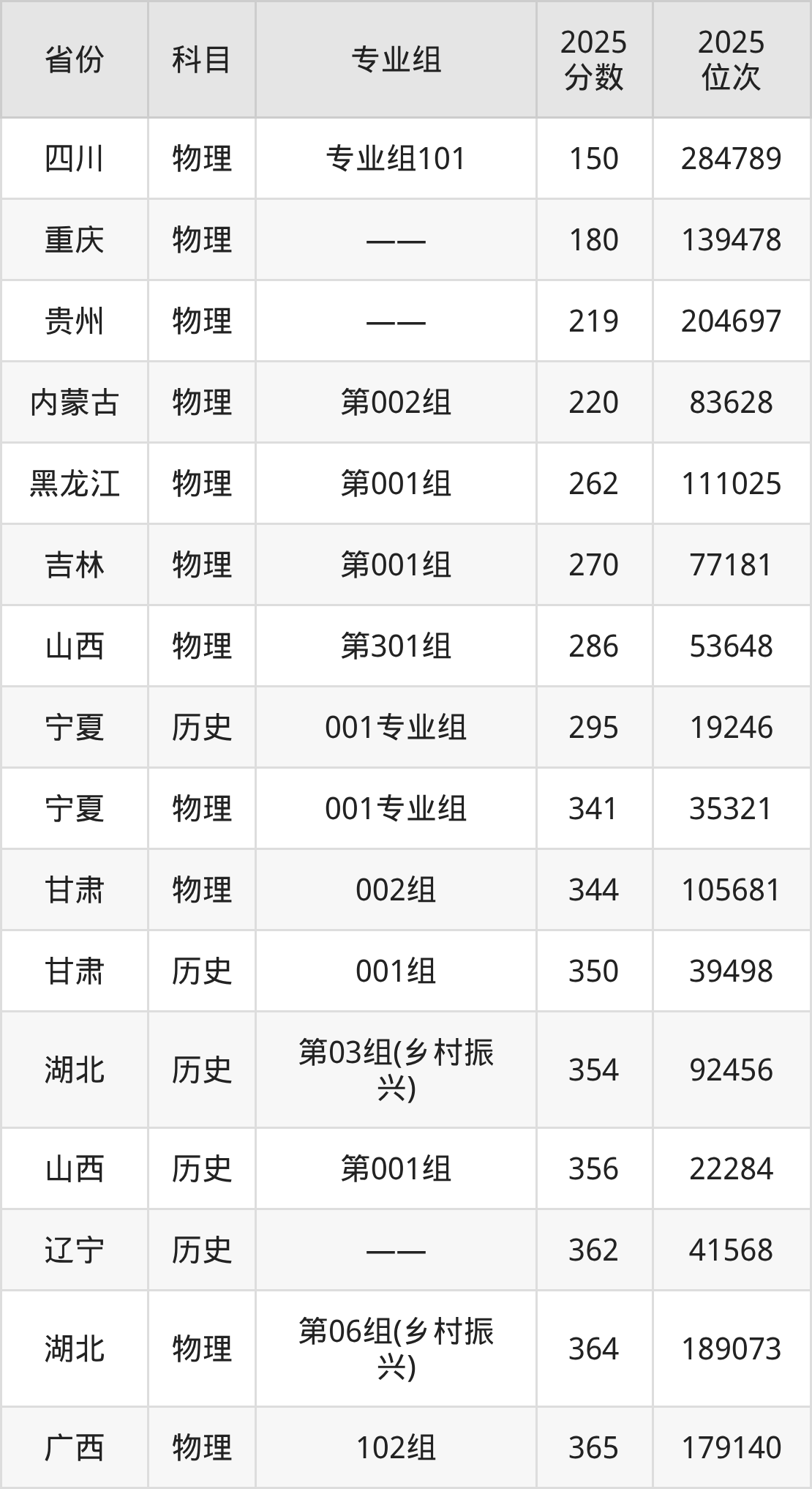 物理类:2025年湖北三峡职业技术学院录取最低分是150分(四川),对应的位次排名是284789名。