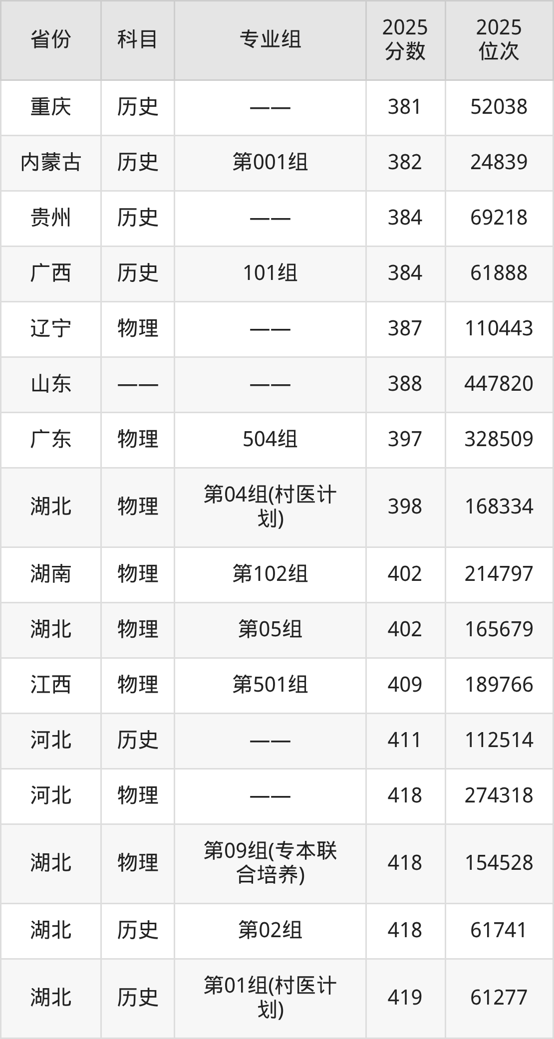 物理类:2025年湖北三峡职业技术学院省内录取最低分是364分,对应的位次排名是189073名。建议:如果2026年排名超过189073名,那么被该校录取的概率较大。