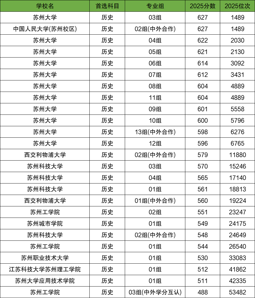 2025年苏州本科各大学专业组录取分数线(历史类):