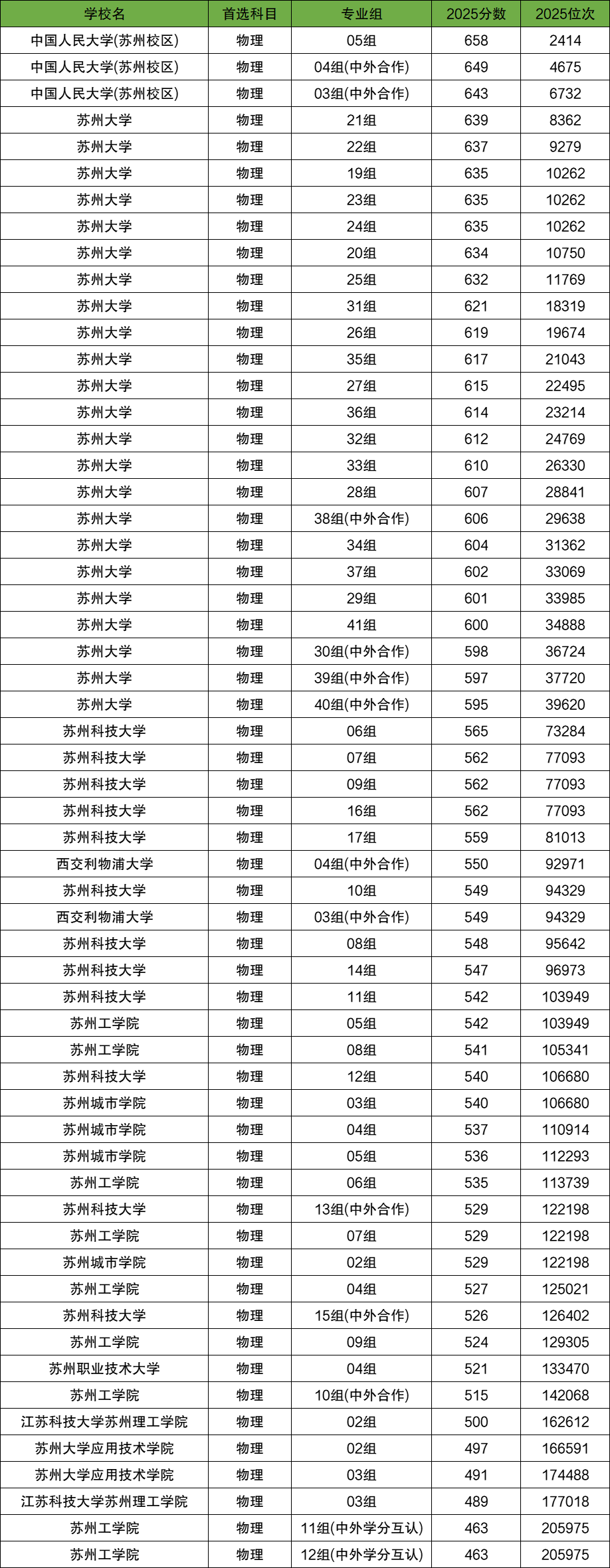 2025年苏州本科各大学专业组录取分数线(物理类):