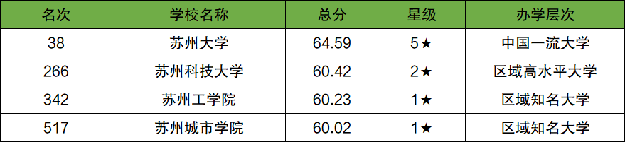 根据校友会2025年中国大学排行榜,苏州内各大学排名前四的院校是: