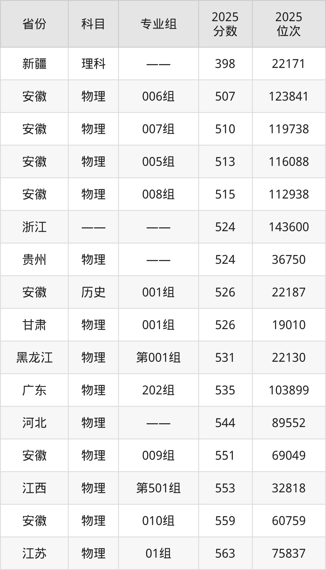 理科:2025年皖南医学院录取最低分是398分(新疆),对应的位次排名是22171名。