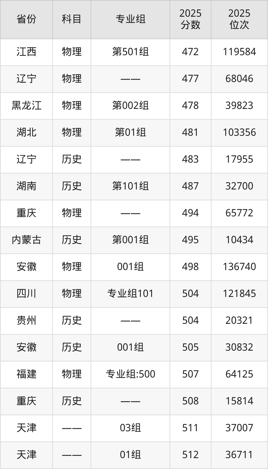 2025年济宁学院全国排名第487位,2025年录取分数线最低417分(位次71049)。本文将展示济宁学院在各省最低录取分数线汇总,供2026届想要报考该校的考生查阅。
