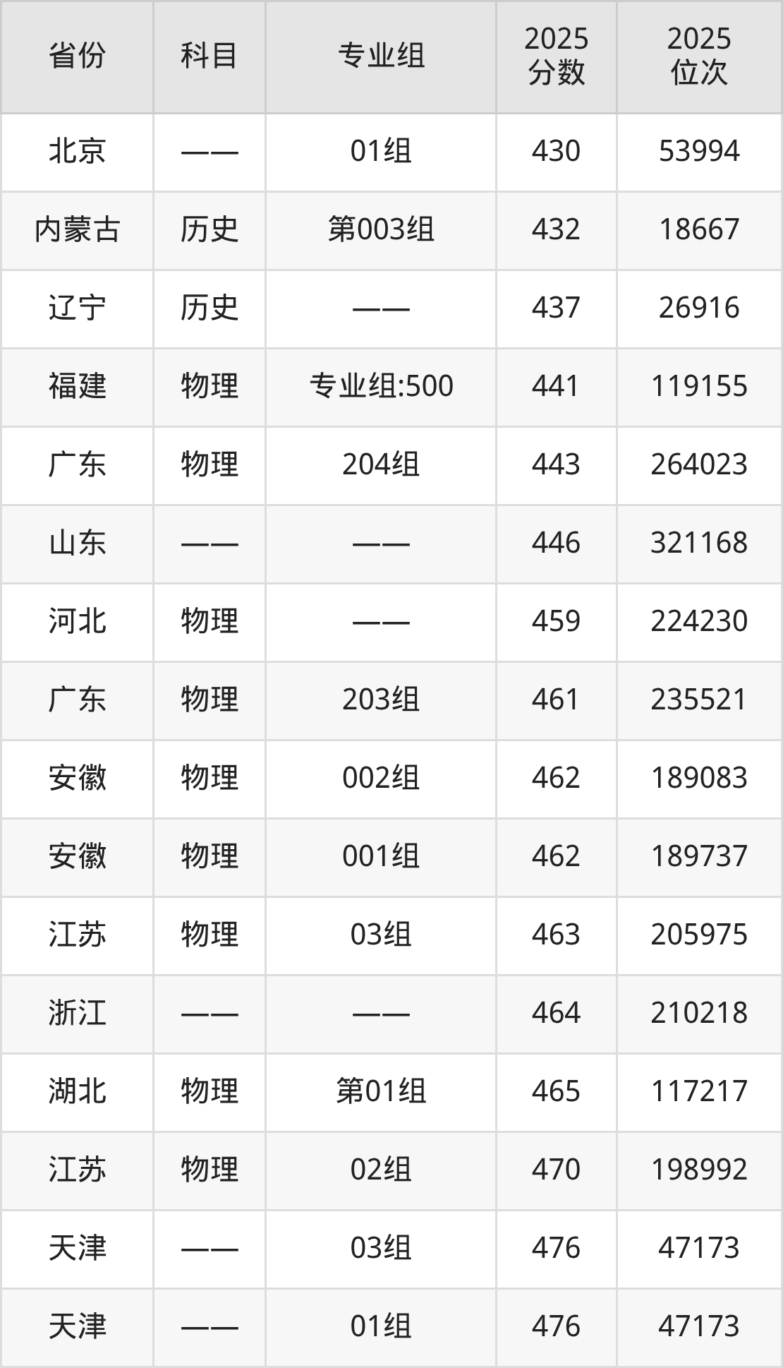 3+3地区:2025年吉林建筑科技学院录取最低分是430分(北京),对应的位次排名是53994名。