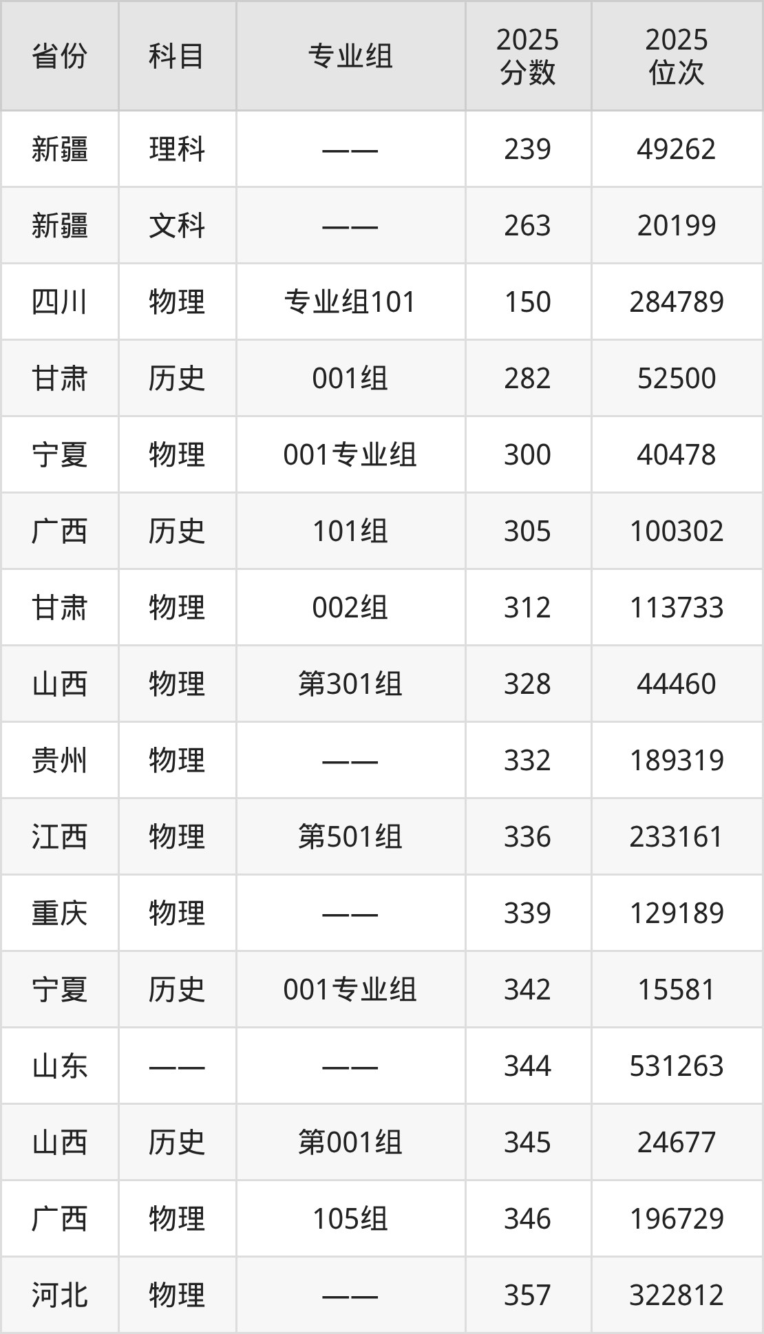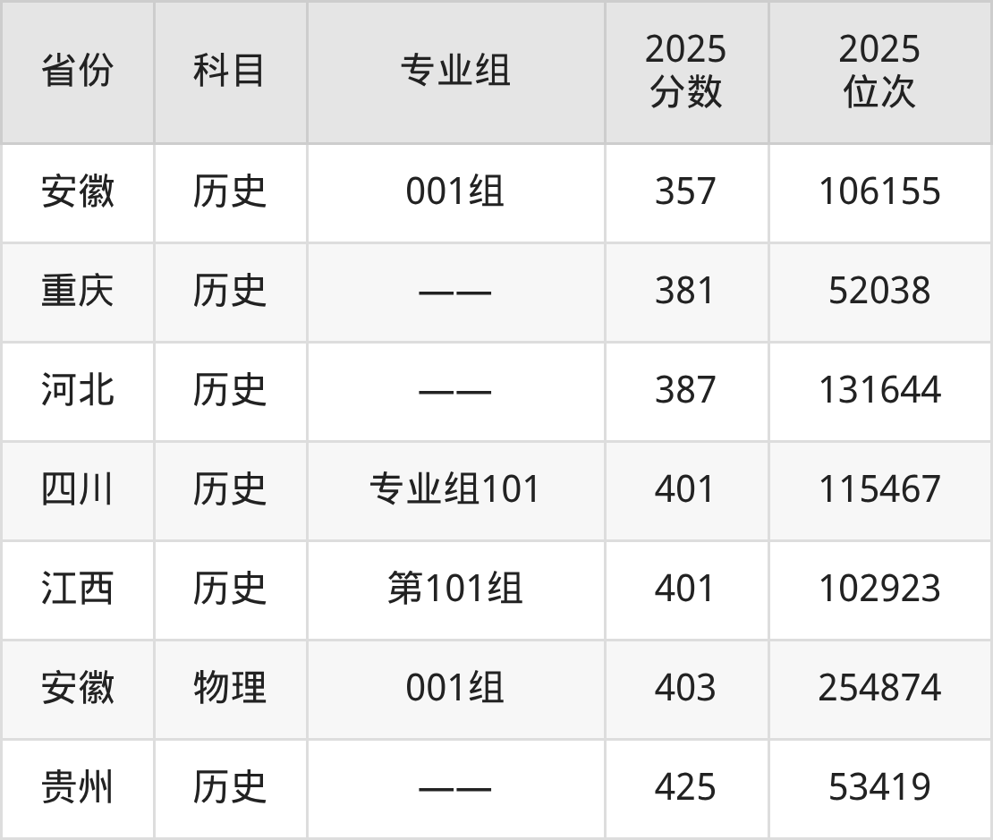 物理类:2025年安康职业技术学院录取最低分是150分(四川),对应的位次排名是284789名。