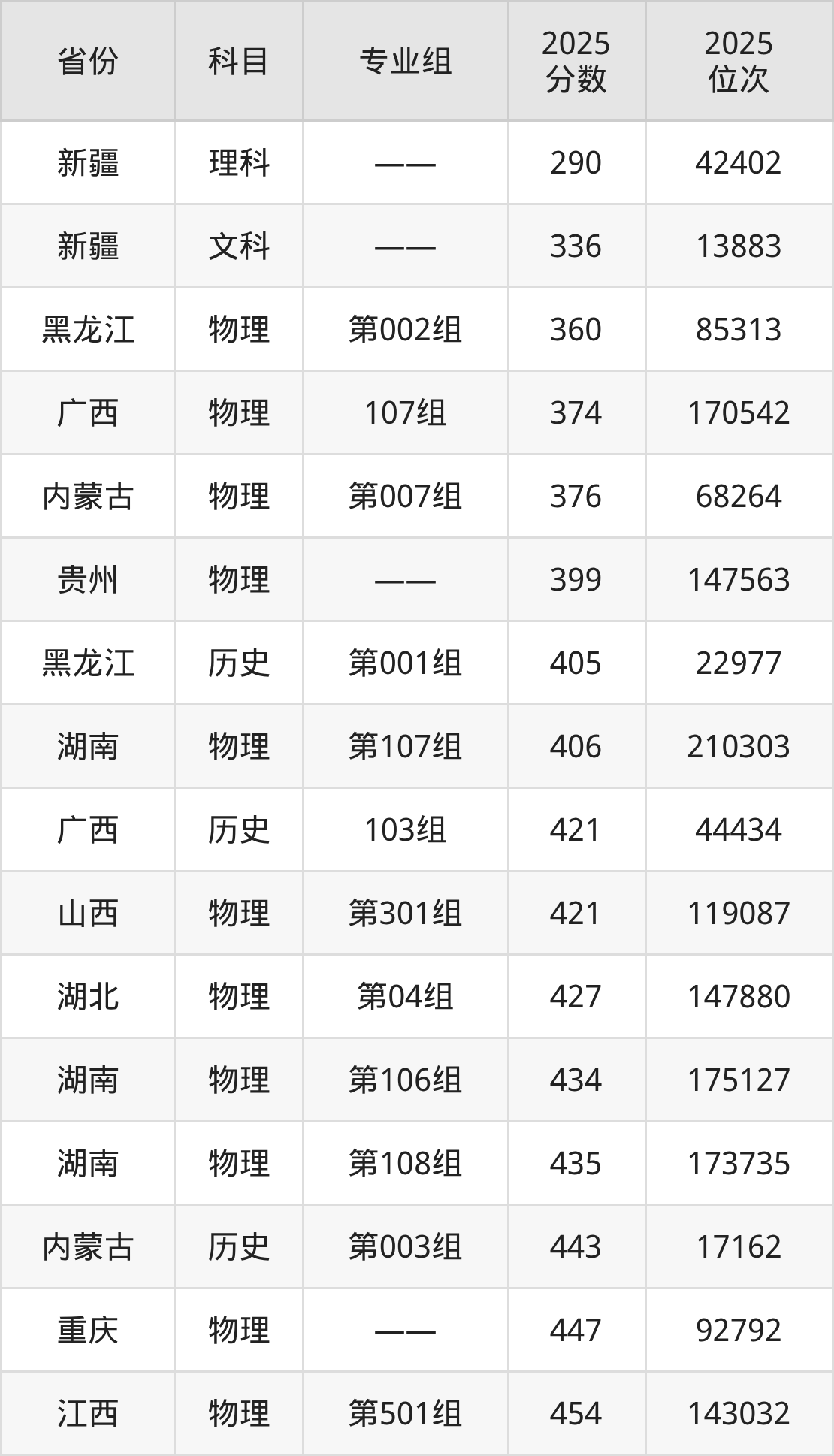 理科:2025年常德学院录取最低分是290分(新疆),对应的位次排名是42402名。