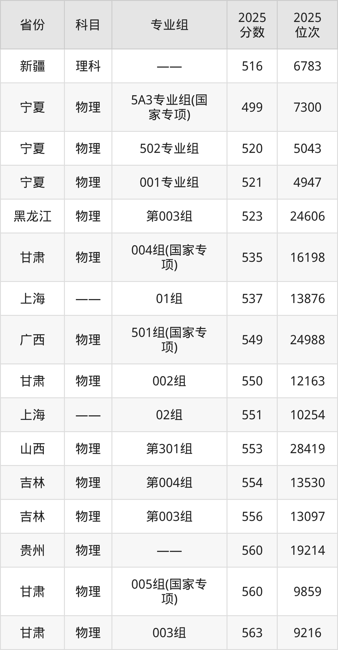 物理类:2025年中国矿业大学(北京)录取最低分是499分(宁夏),对应的位次排名是7300名。