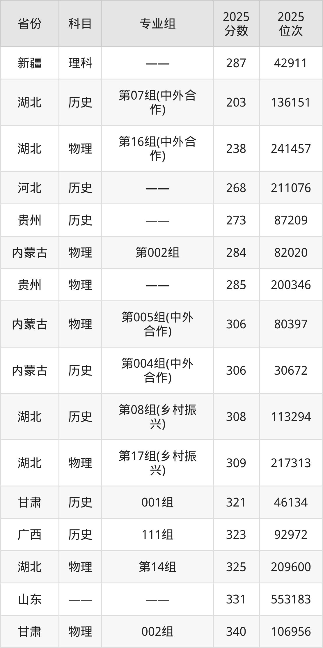 物理类:2025年湖北工业职业技术学院录取最低分是284分(内蒙古),对应的位次排名是82020名。