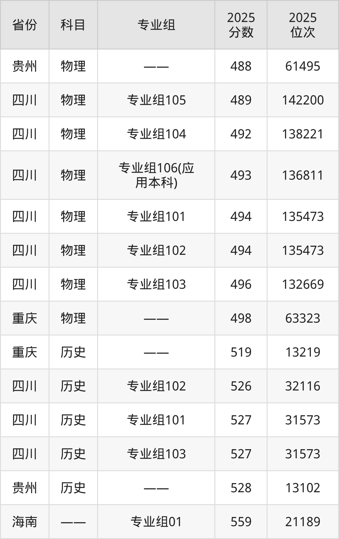 3+3地区:2025年四川民族学院录取最低分是559分(海南),对应的位次排名是21189名。