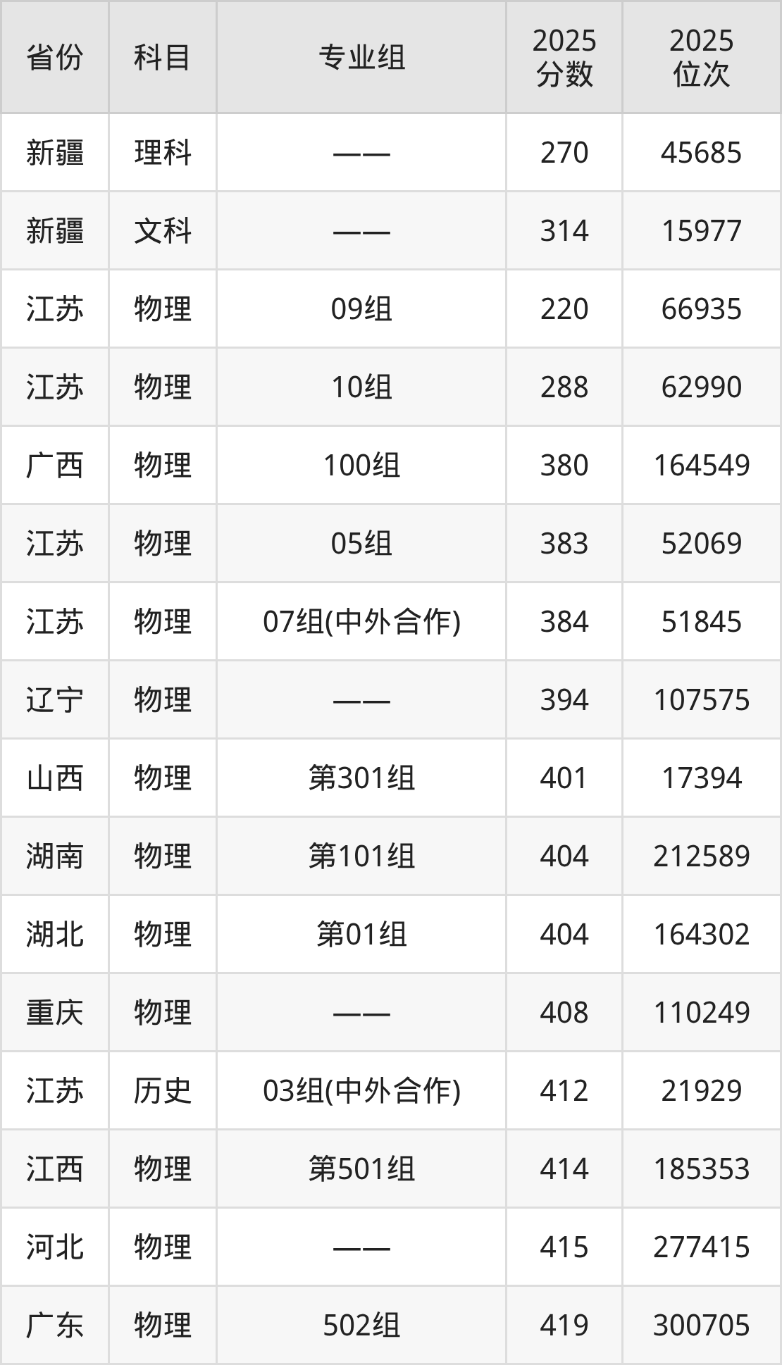 物理类:2025年江苏医药职业学院录取最低分是380分(广西),对应的位次排名是164549名。